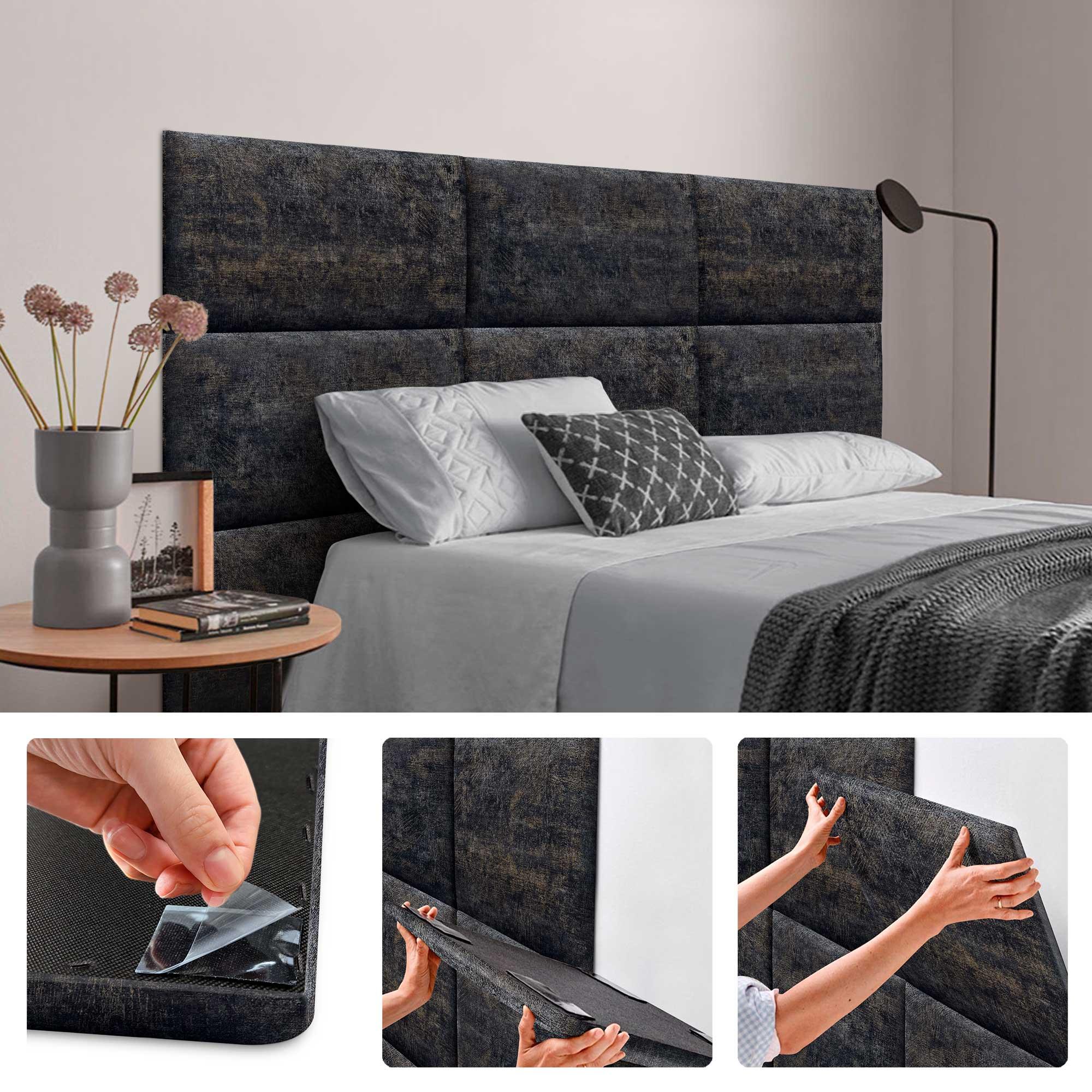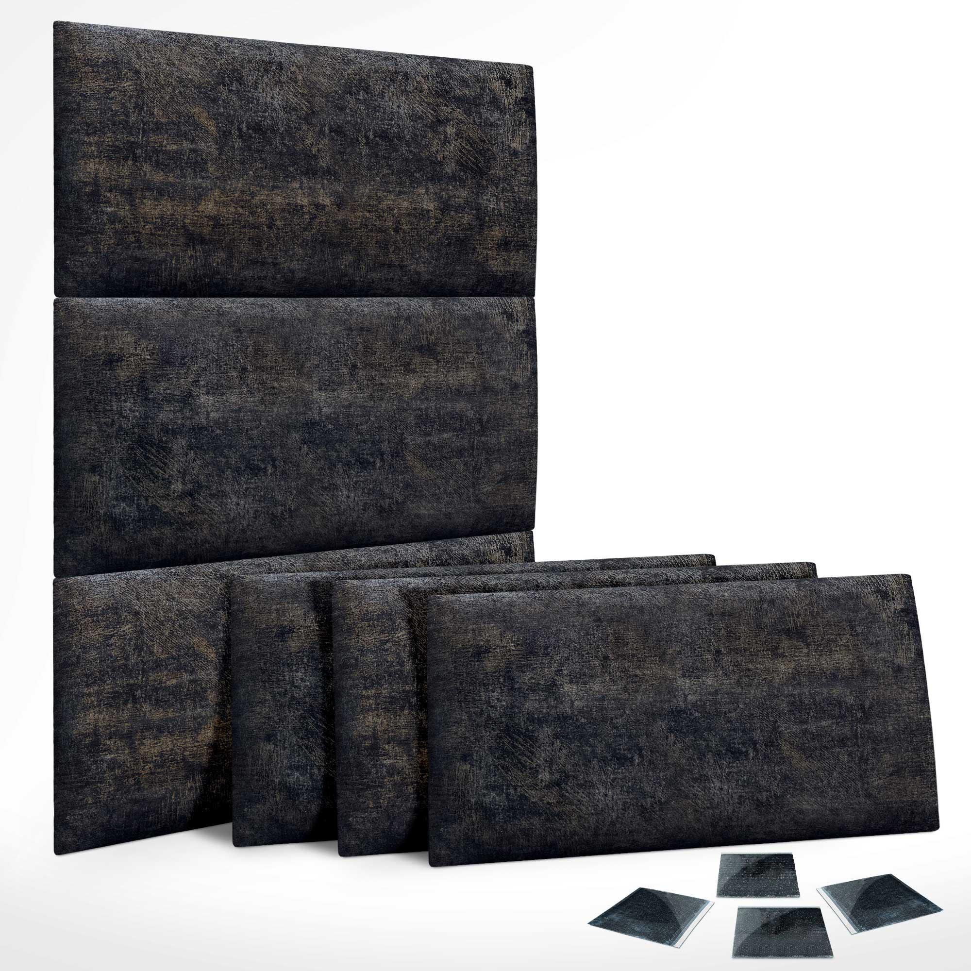 DHOME Conjunto de 6 Painéis Estofados em Tecido de Luxo Pack Autoadesivo para Parede Absorvente Acústico e Protetor (Luxurious Black, 60x50cm, x6)
