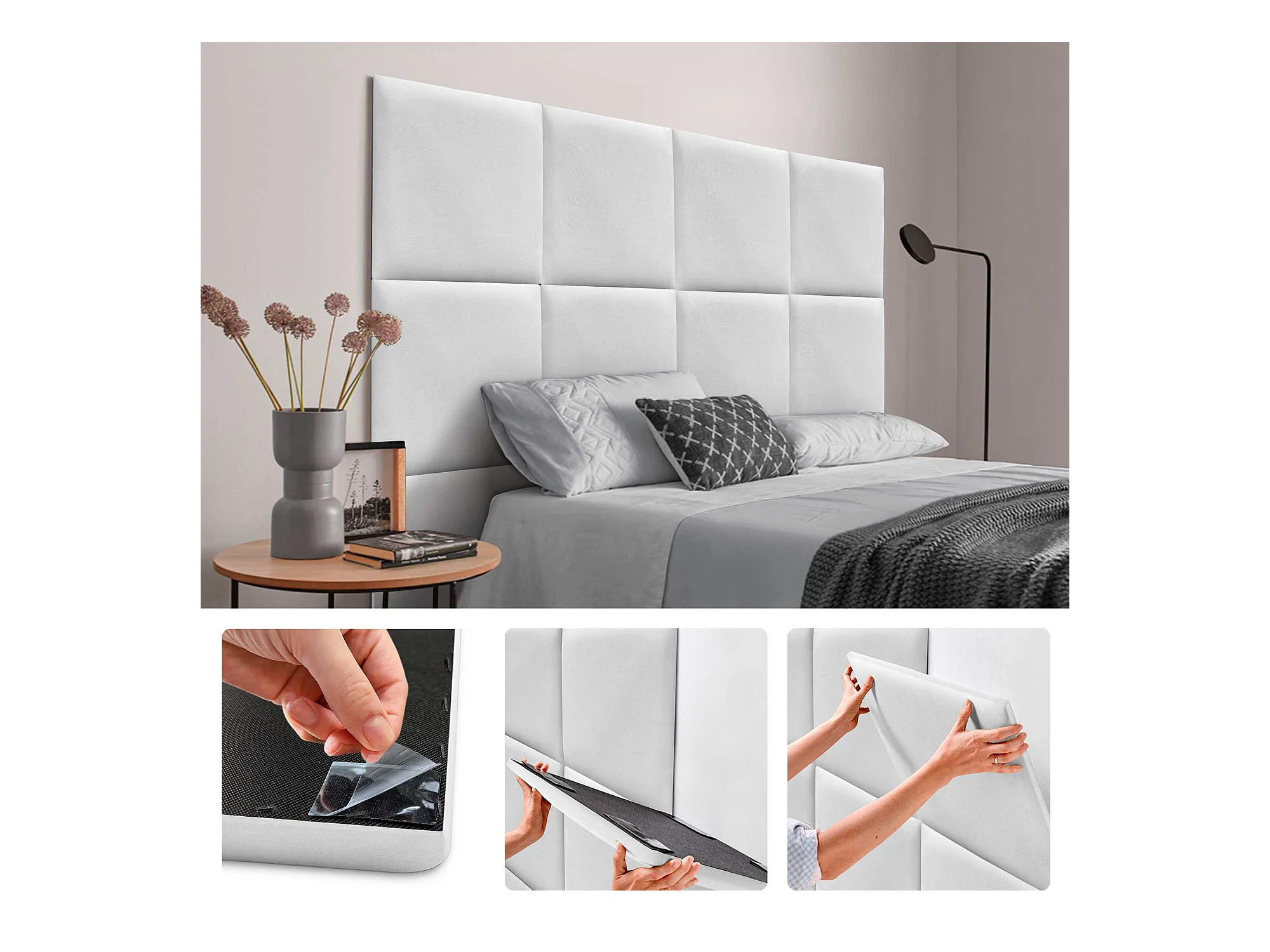 DHOME Painéis Estofados de Tecido Autoadesivos para Parede Acústicos Absorventes Proteção contra Impactos Cabeceiras Decoração (Branco, 60x60cm)
