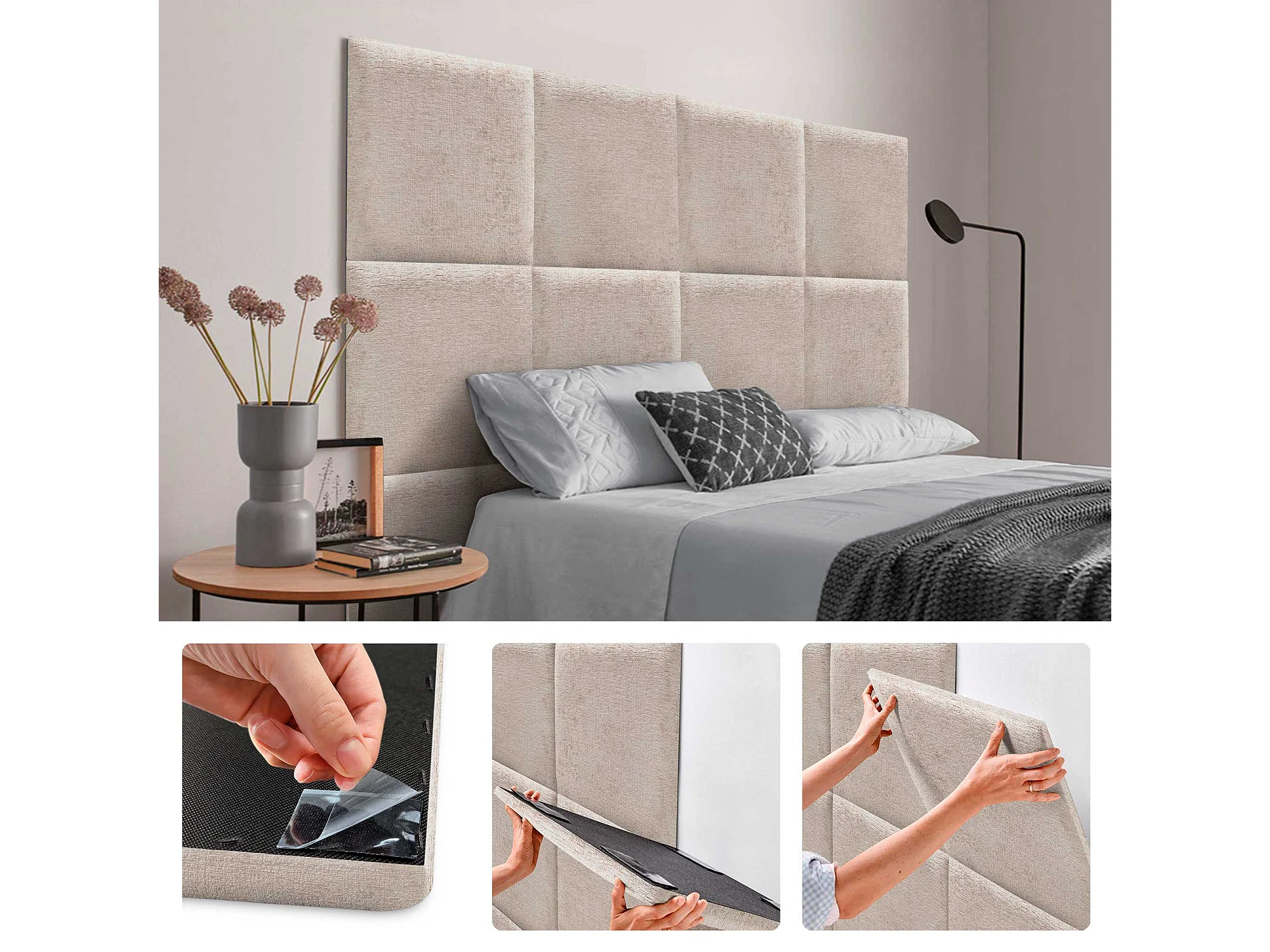 DHOME Painéis Estofados de Tecido Autoadesivos para Parede Acústicos Absorventes Proteção contra Impactos Cabeceiras Decoração (bege, 50x50cm)