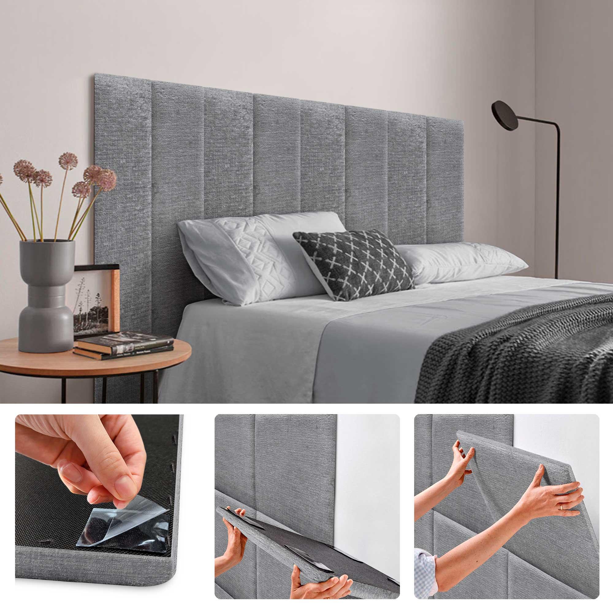 DHOME Paneles Tapizados de Lana Ecologica Autoadhesivos para Pared Acusticos Absorbentes Proteccion Impactos Cabeceros (Gris, 60x20cm)