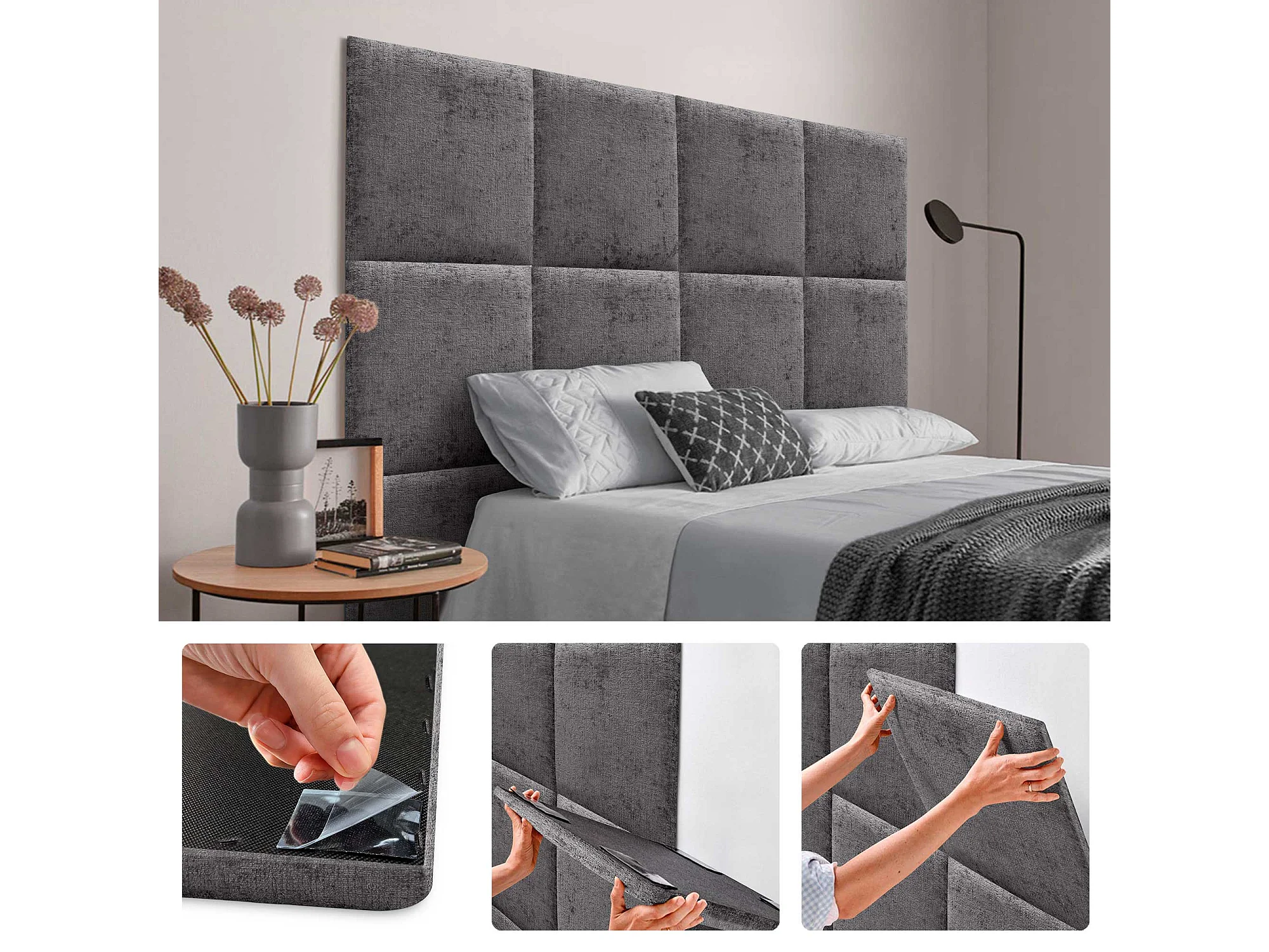 DHOME Painéis Estofados de Tecido Autoadesivos para Parede Acústicos Absorventes Proteção contra Impactos Cabeceiras Decoração (Cinza claro, 60x60cm)