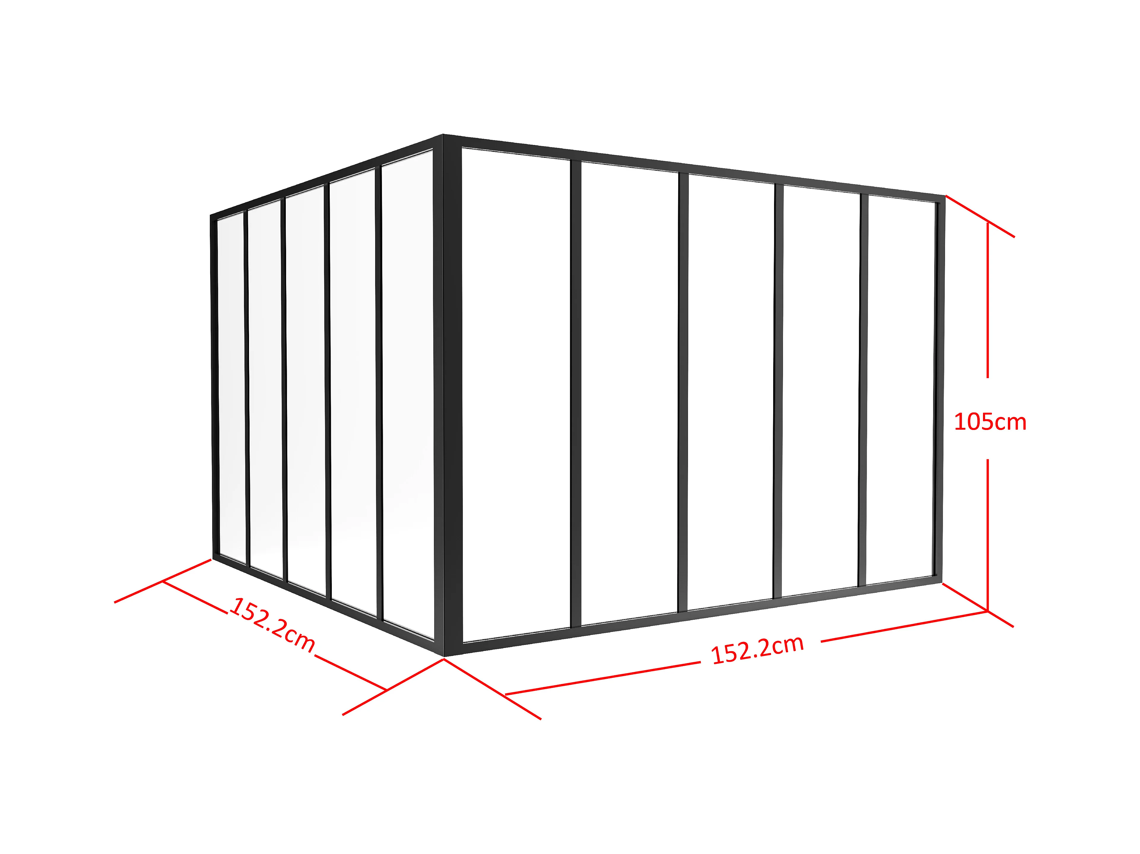 Divisória de canto de atelier em alumínio termolacado C150 x L150 x A105 cm preto - BAYVIEW