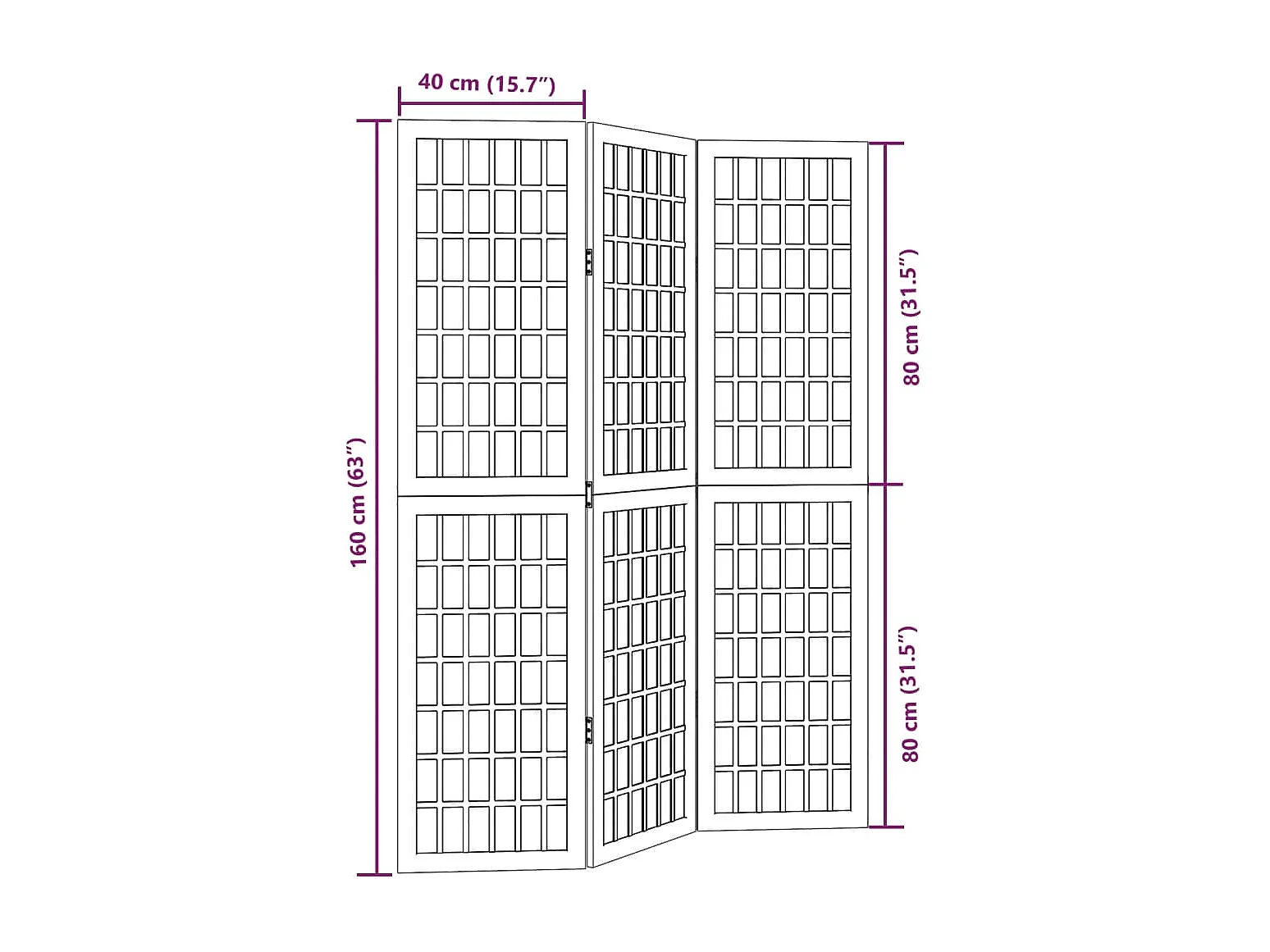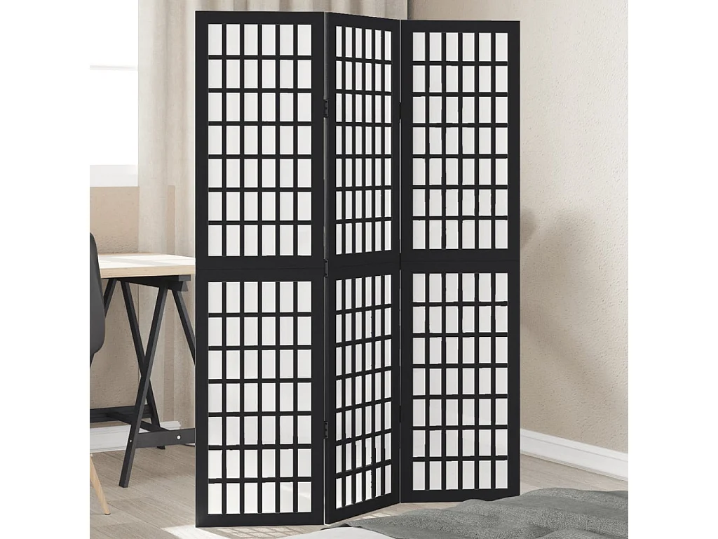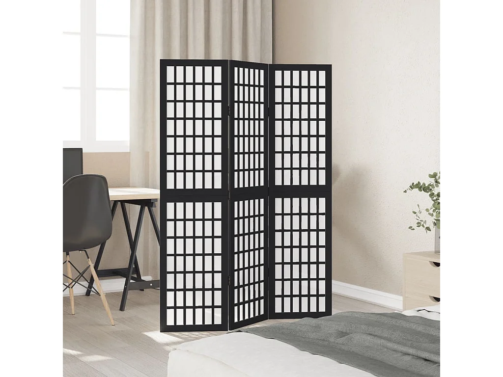 Divisória com 3 painéis Madeira de pinho Preto 121x180 cm