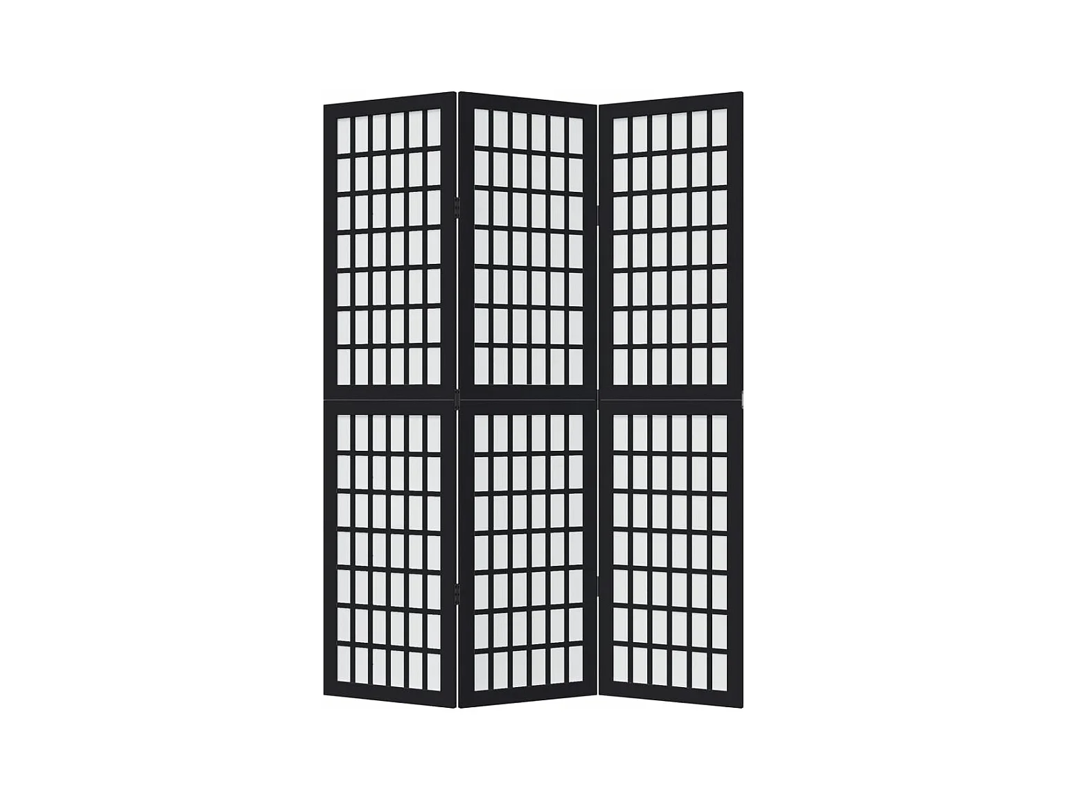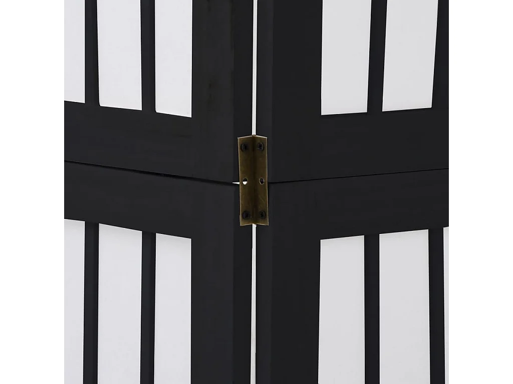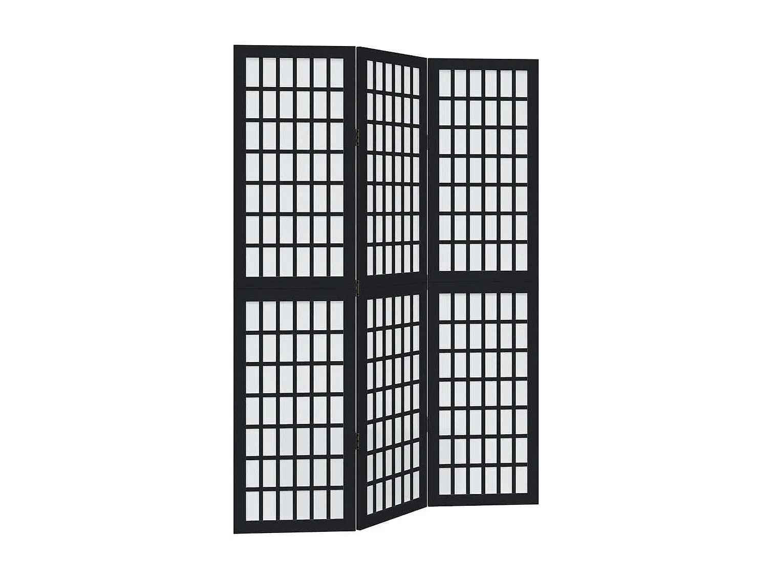 Divisória preta com 3 painéis em madeira maciça de paulownia