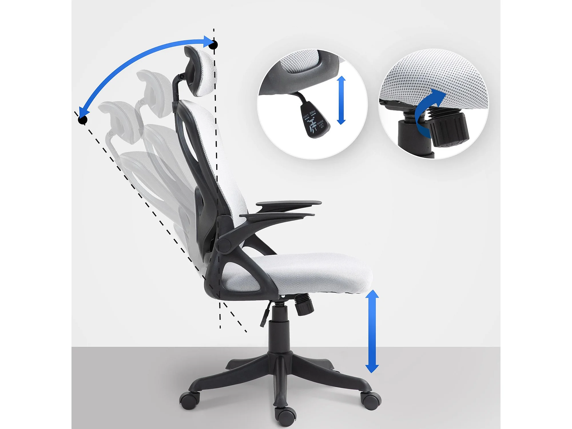 Cadeira de escritório - Giratória e regulável em altura - Tecido - cinzento - LORIANA