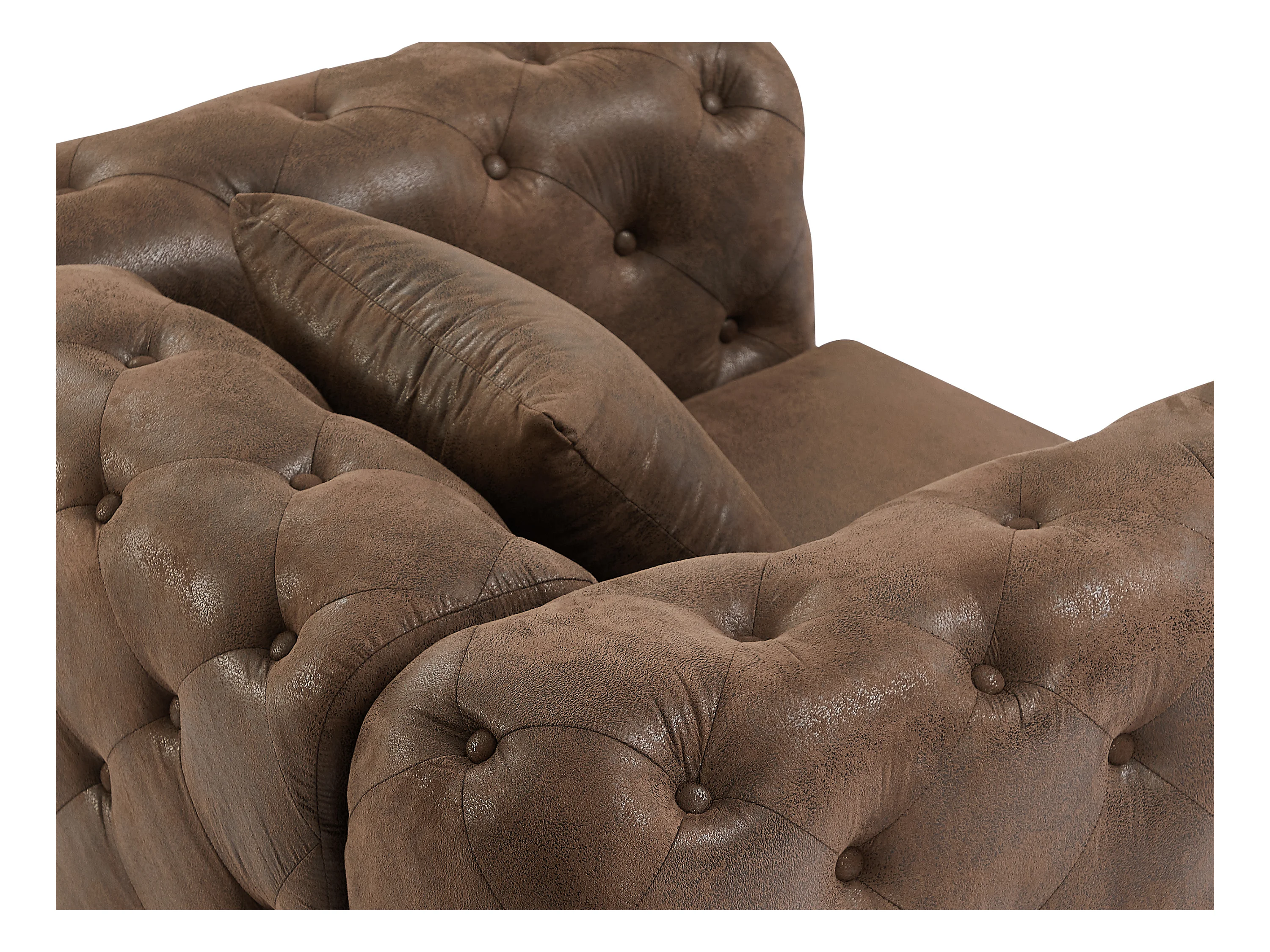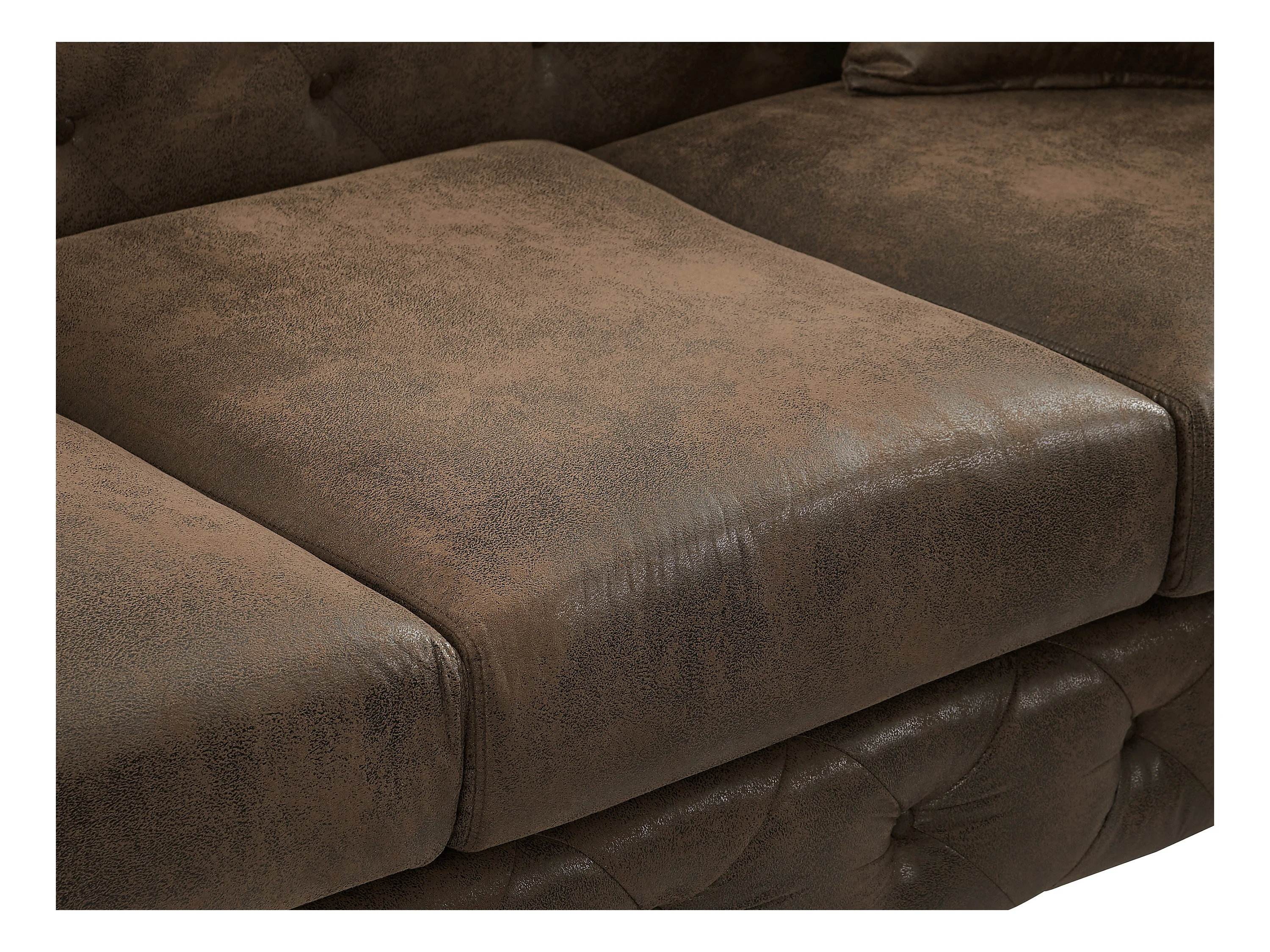Sofá de 3 lugares, poltrona e pufe chesterfield em microfibra aspeto couro envelhecido - EDWINA