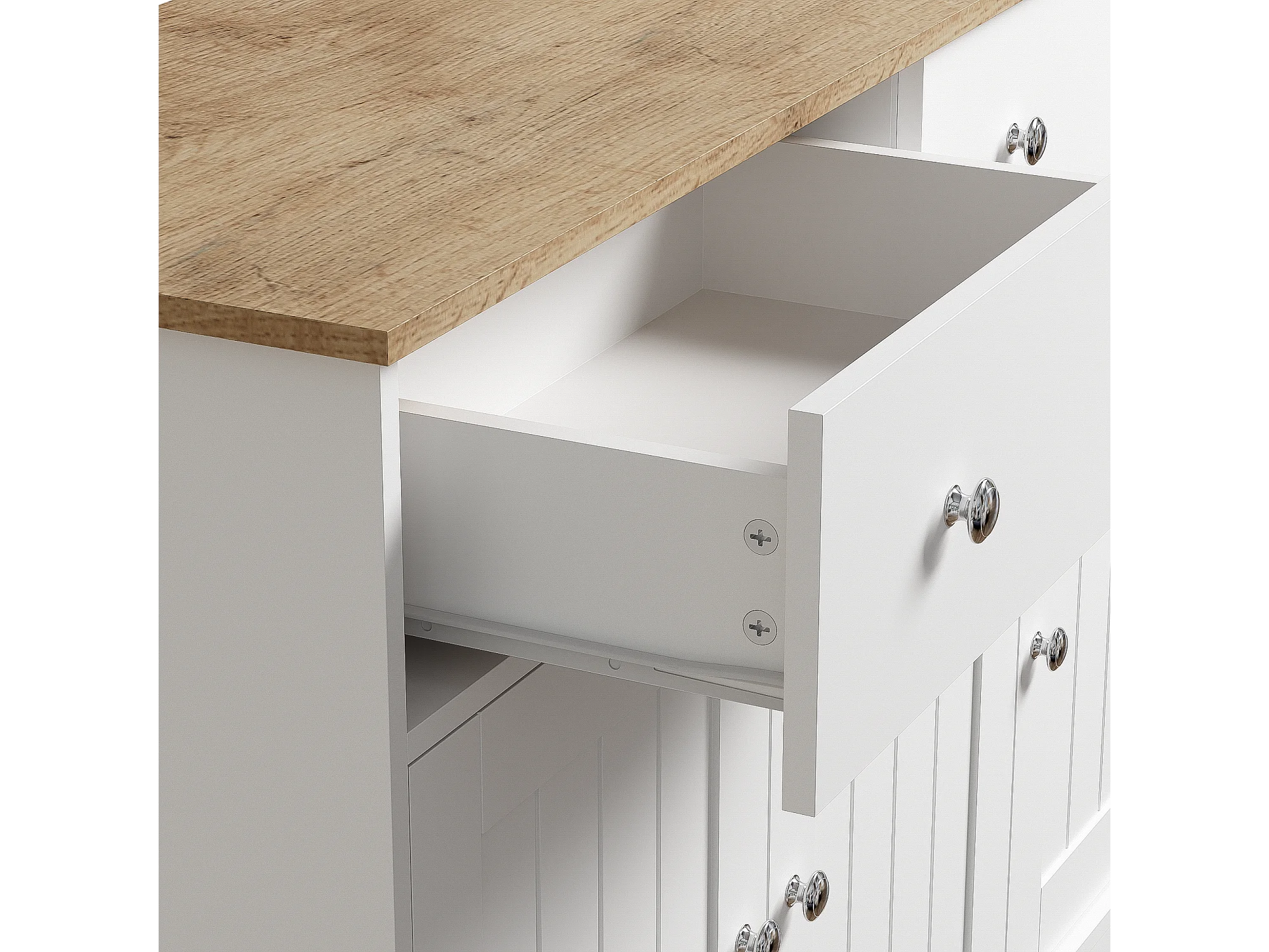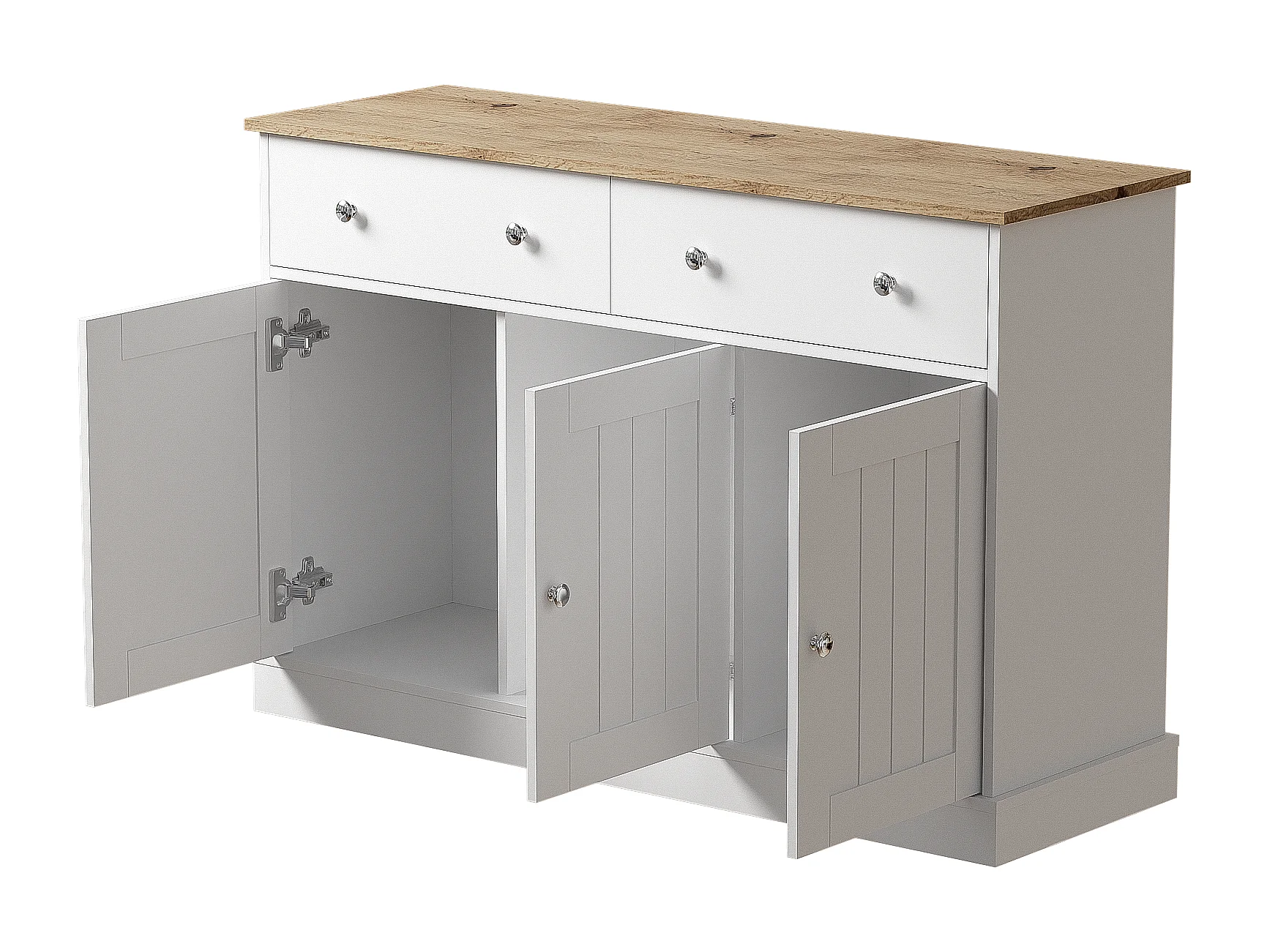 Aparador elegante para sala de estar, armário de cozinha com 3 portas e 2 gavetas, acabamento em carvalho e branco.