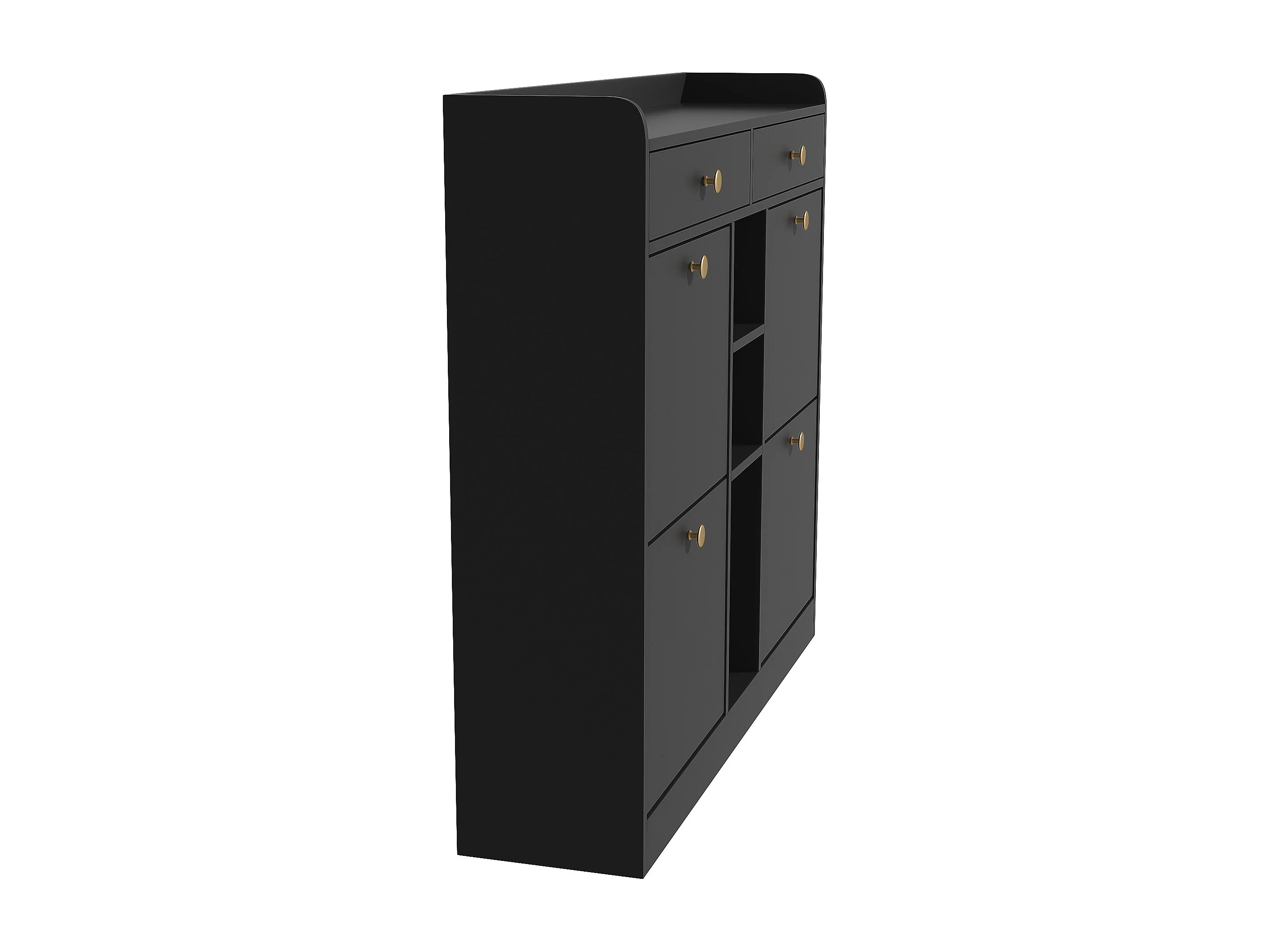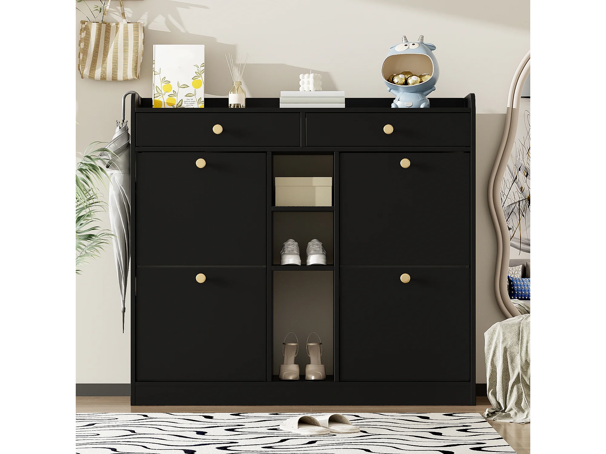 Sapateira multifuncional com puxador, aparador com 2 gavetas e 2 portas, preta