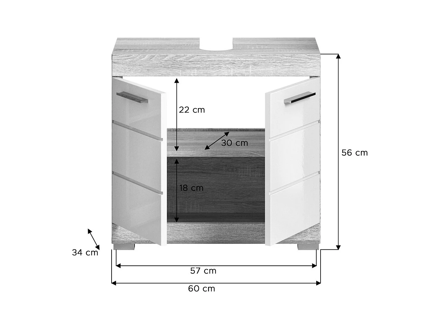 Ensemble de 3 meubles de salle de bain KING – Chêne foncé et noir - 60 cm