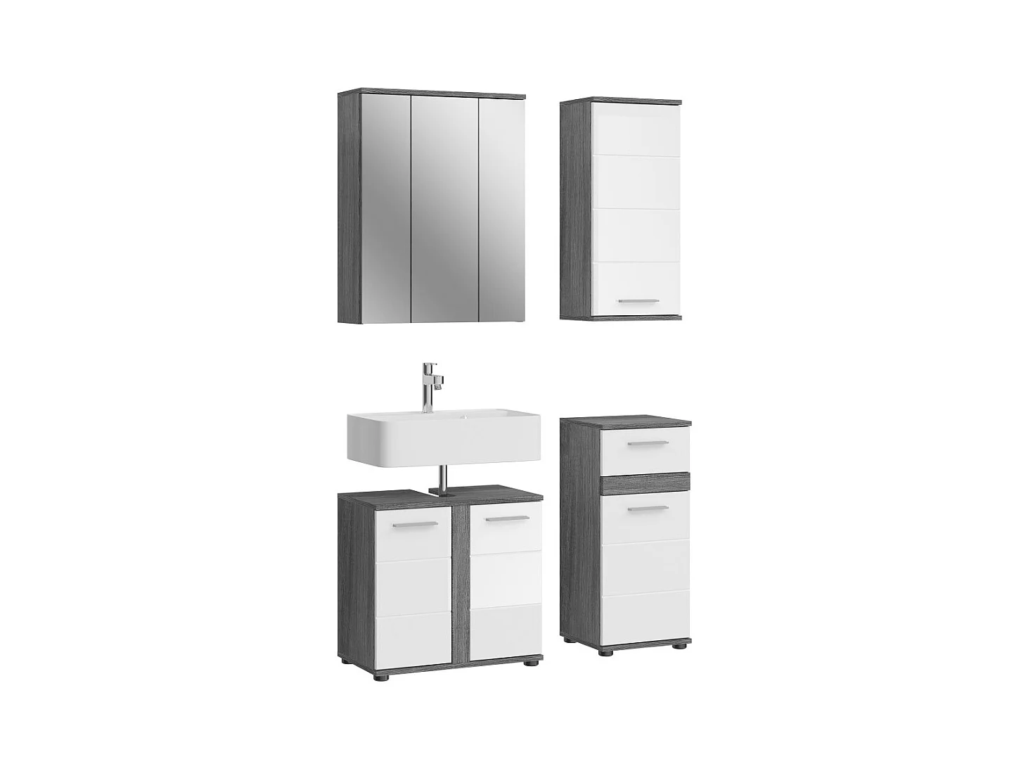Conjunto para banheiro: móvel sob a pia + armário de armazenamento com espelhos – Cinza antracite e carvalho claro – SELMA