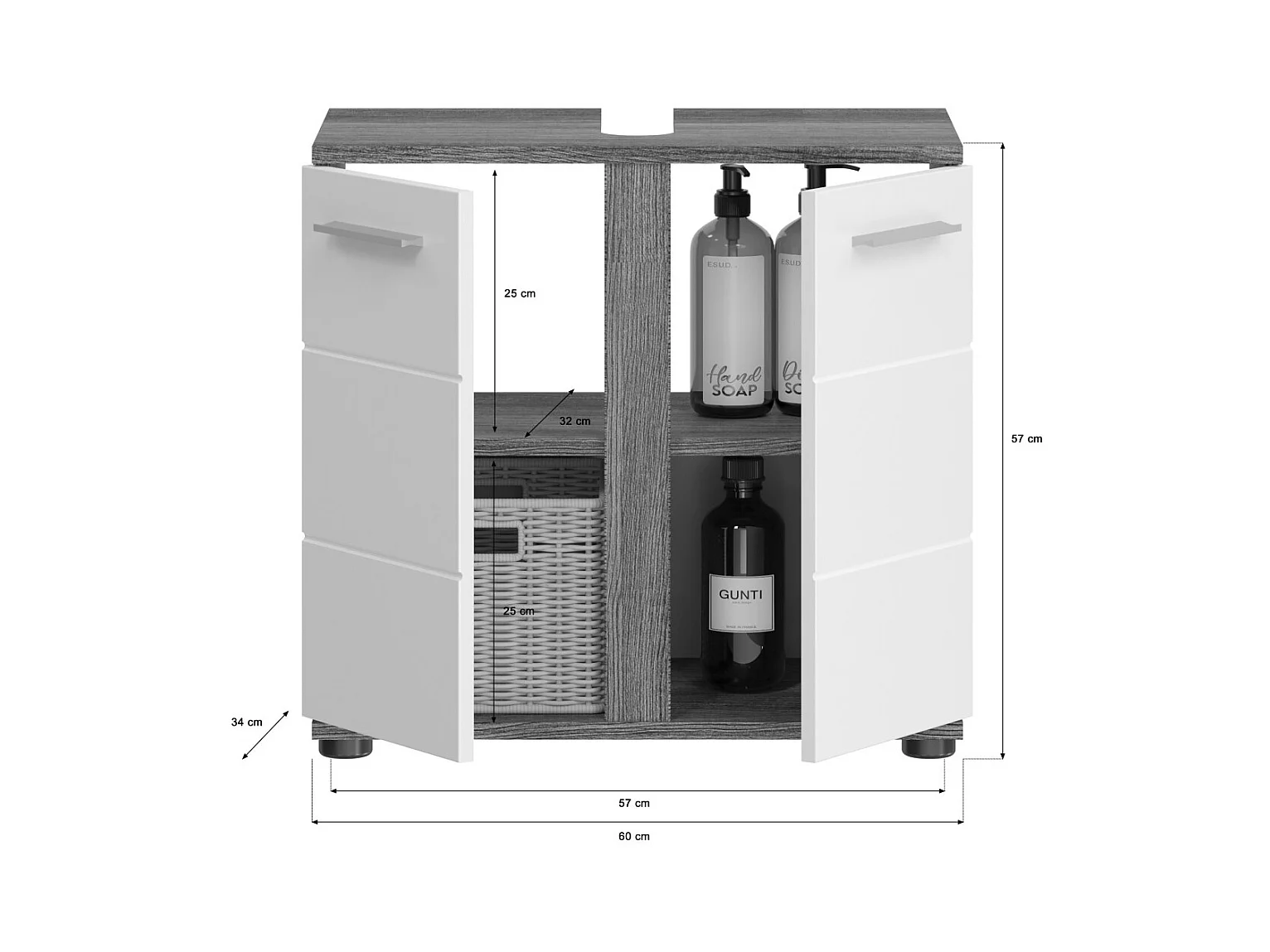 Ensemble de meubles de salle de bain WILLIAM – Gris foncé et blanc – 64x191x34 cm – Avec LED
