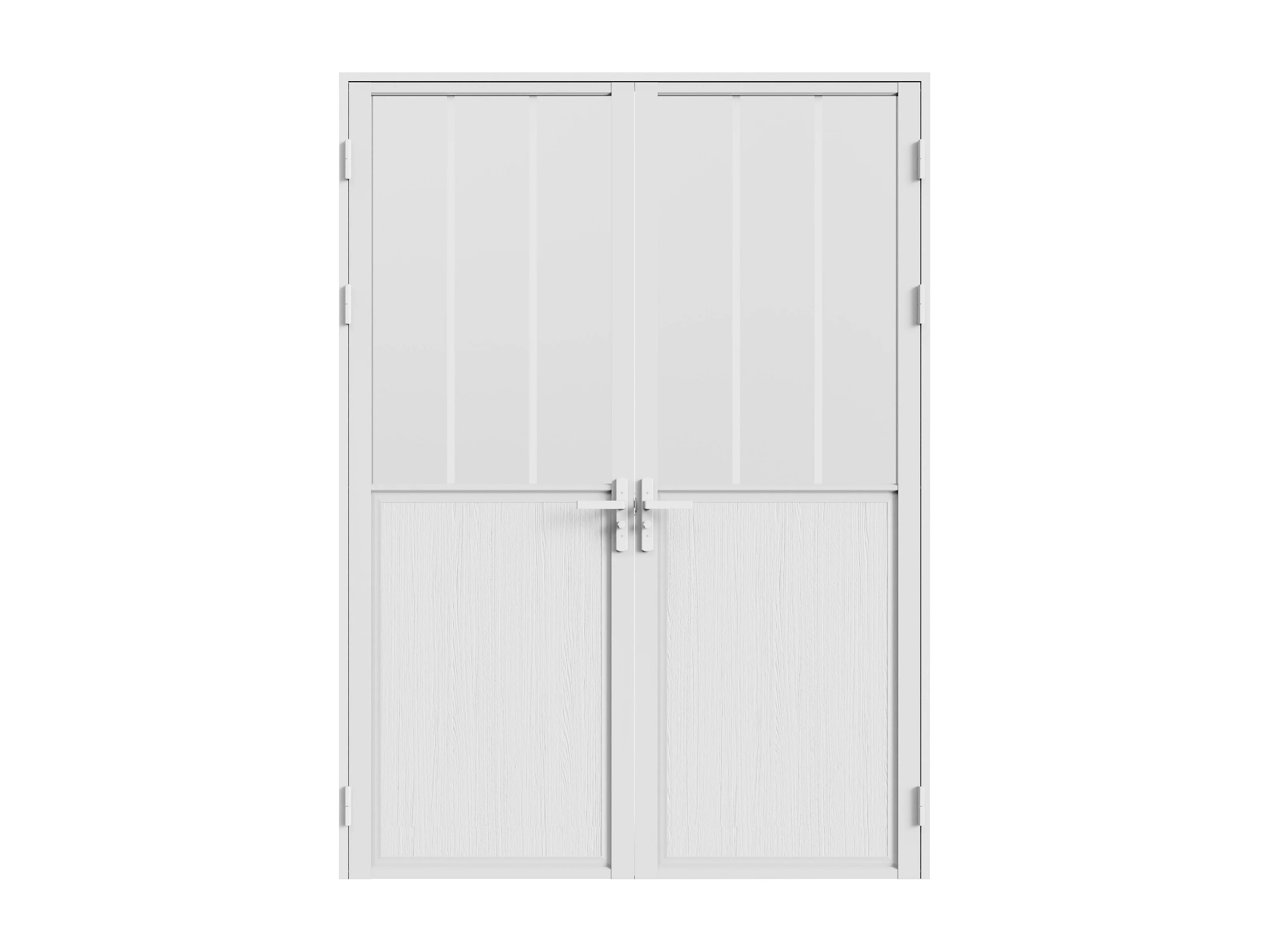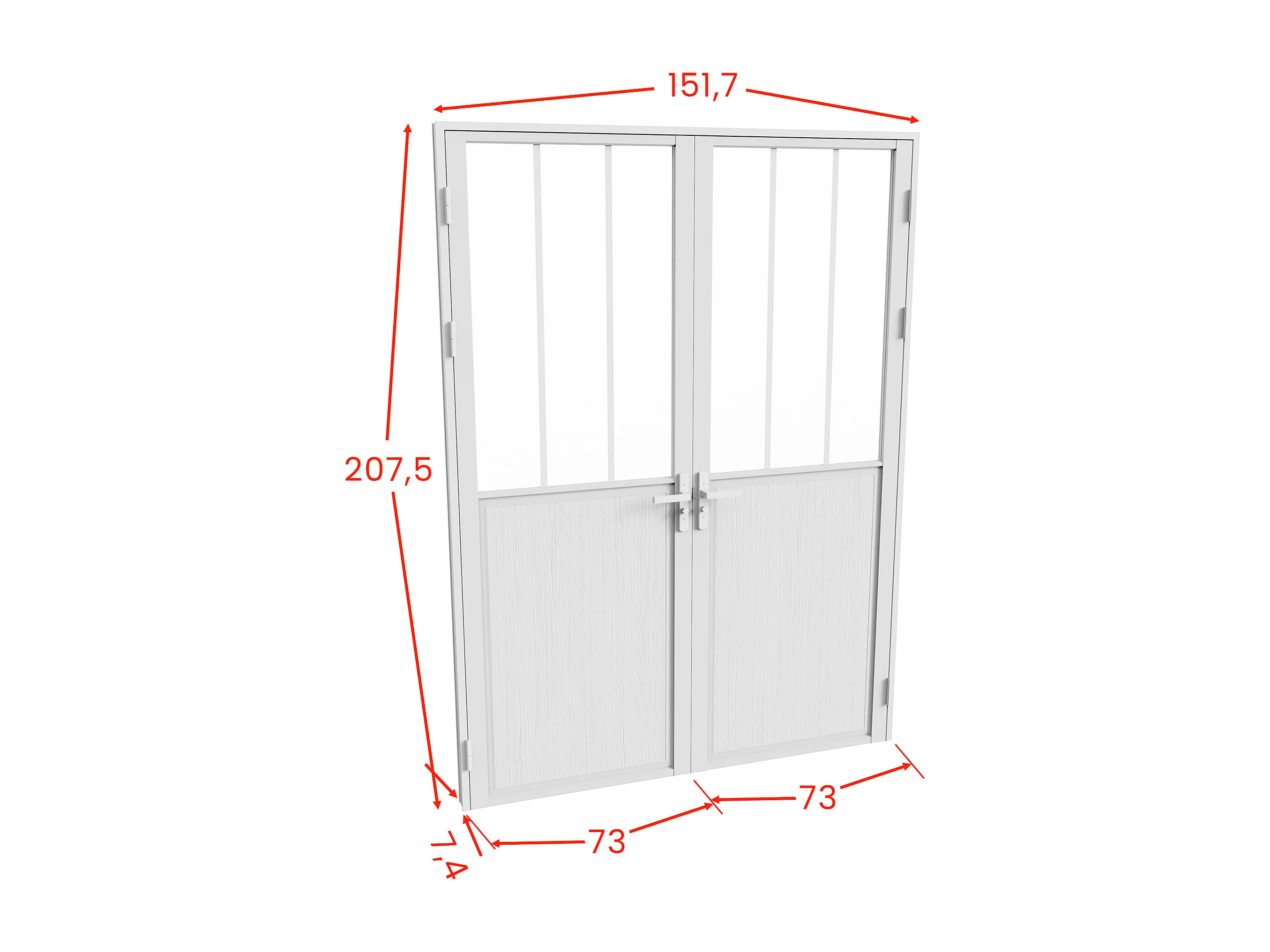 Bloco de porta reversível de duas folhas em alumínio e vidro temperado fosco estilo atelier - 2 x A204 x C73 cm - Branco - ERMELO