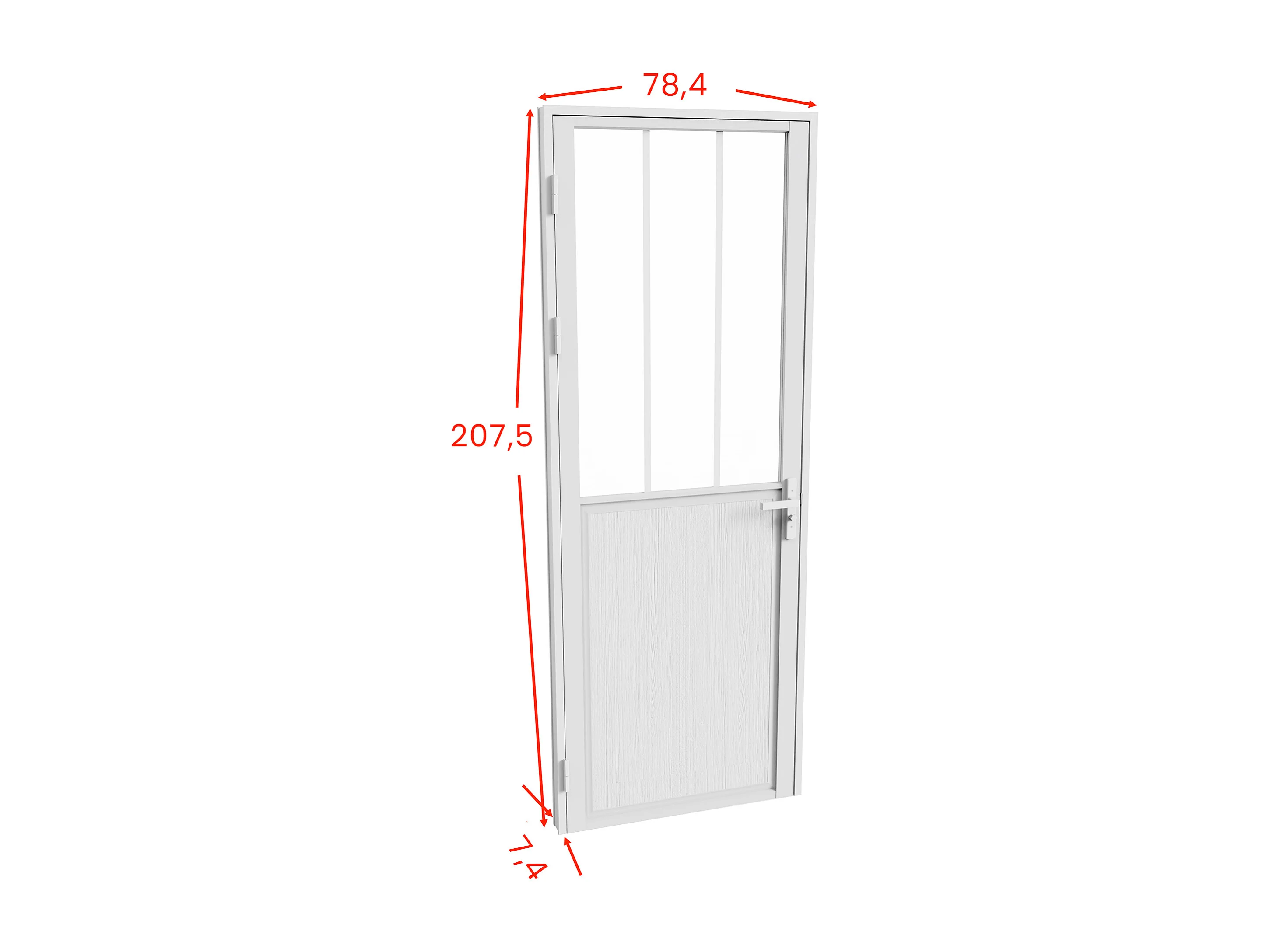 Porta de interior reversível em alumínio e vidro temperado fosco estilo atelier - A204 x C73 cm - Branco - ERMELO