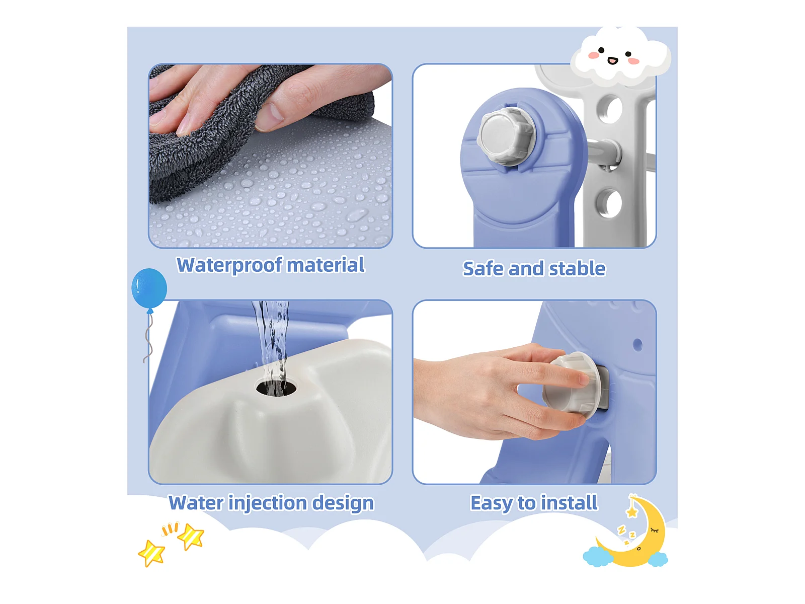 Escorregador infantil, playground infantil 4 em 1 com cesta de basquete, escada de escalada, balanço de jardim