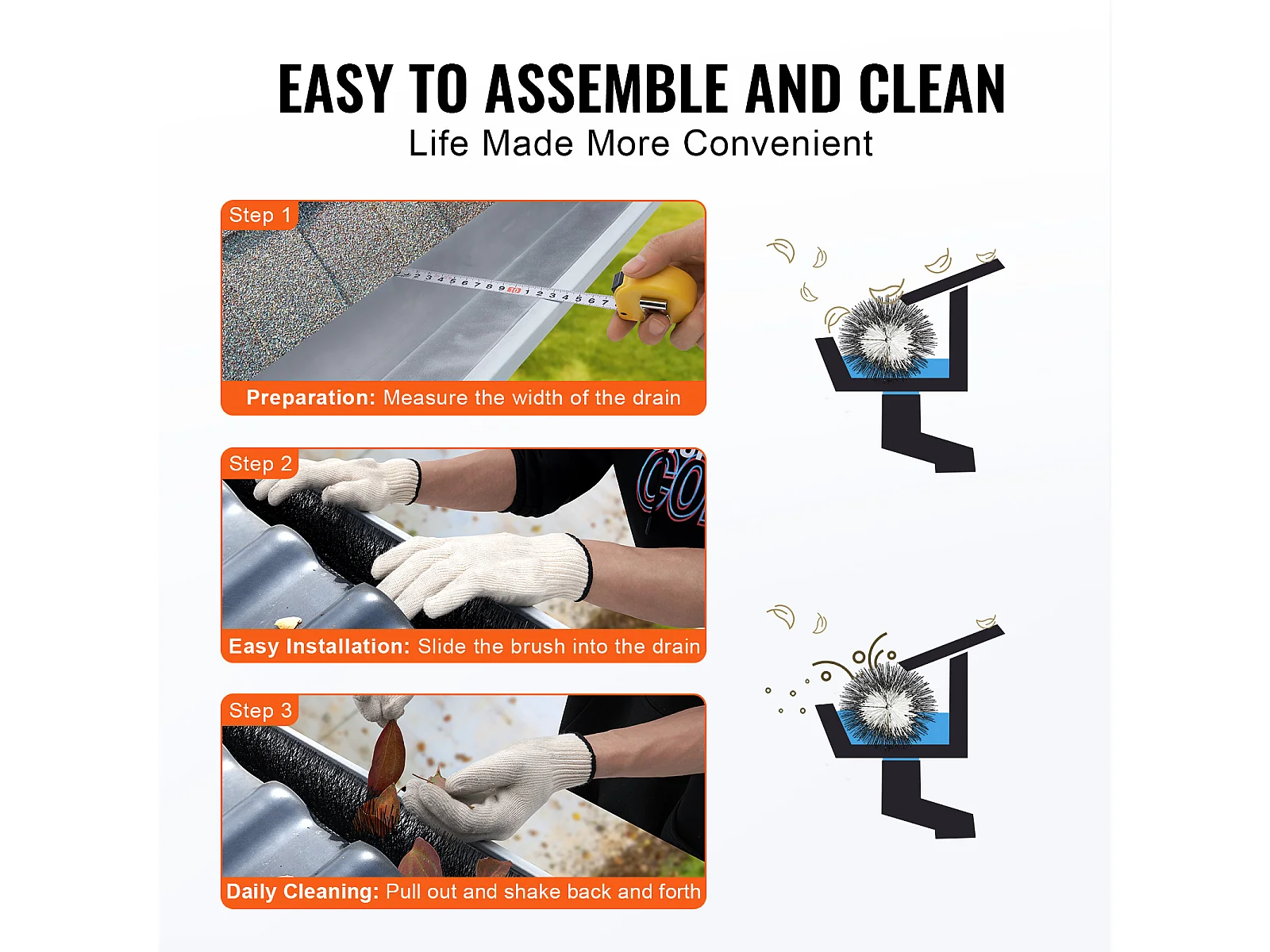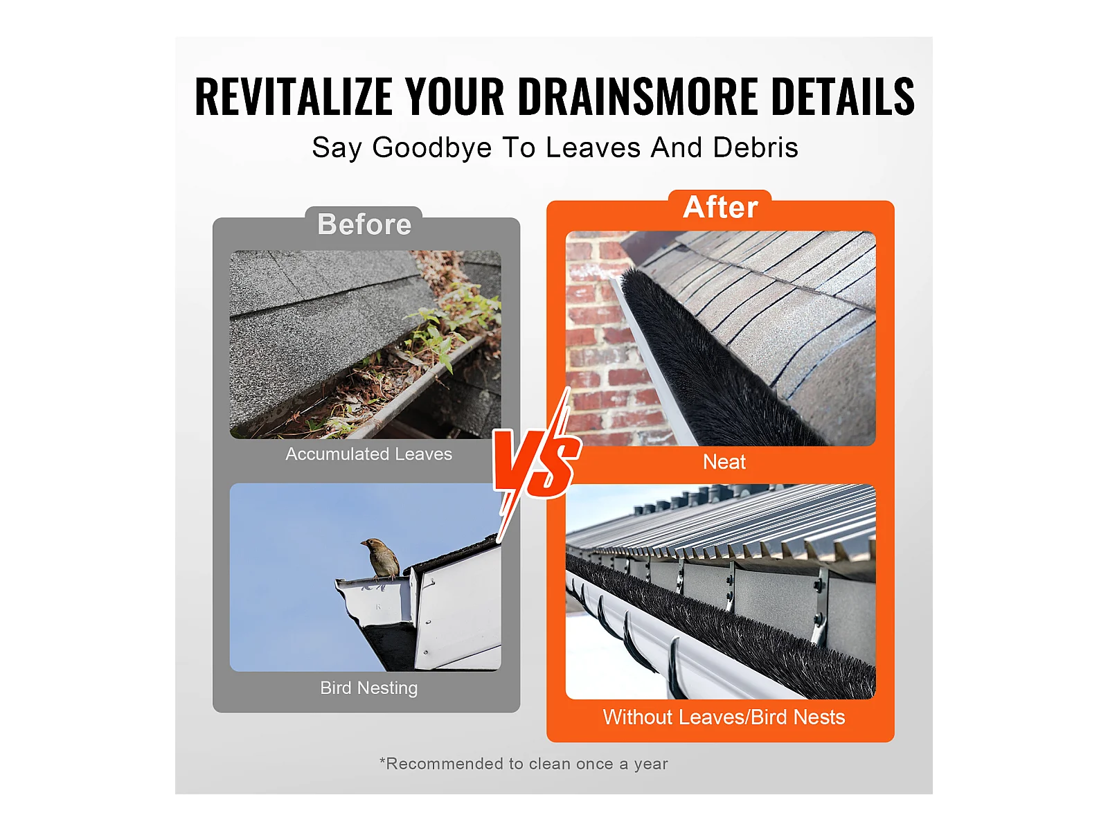 Escova de Proteção para Calha SucceBuy 18 m Anti-Folhas 12,7 cm, 20 peças, Material PP Fio de Aço Galvanizado, Peso 2,9 kg
