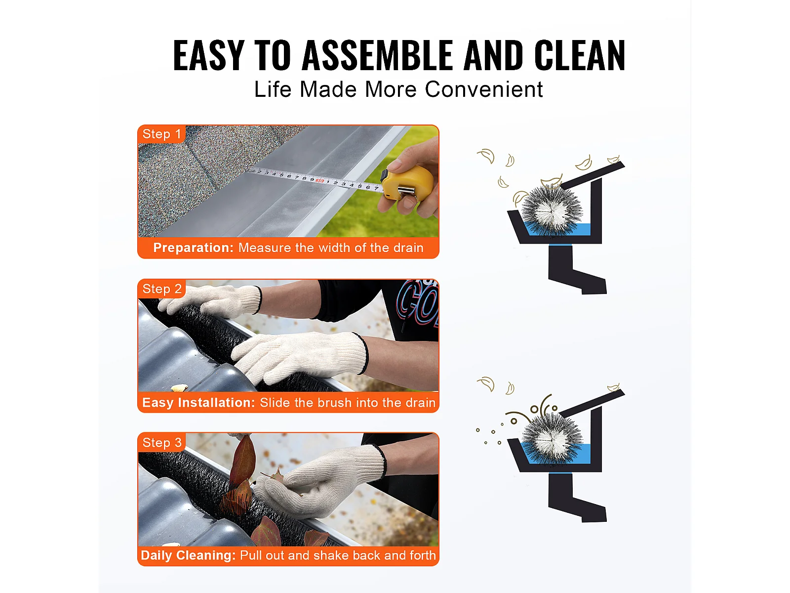 Escova de Proteção para Calha SucceBuy 24 m Anti-Folhas 12,7 cm Modelo 0809-27 Material PP Fio de Aço Galvanizado