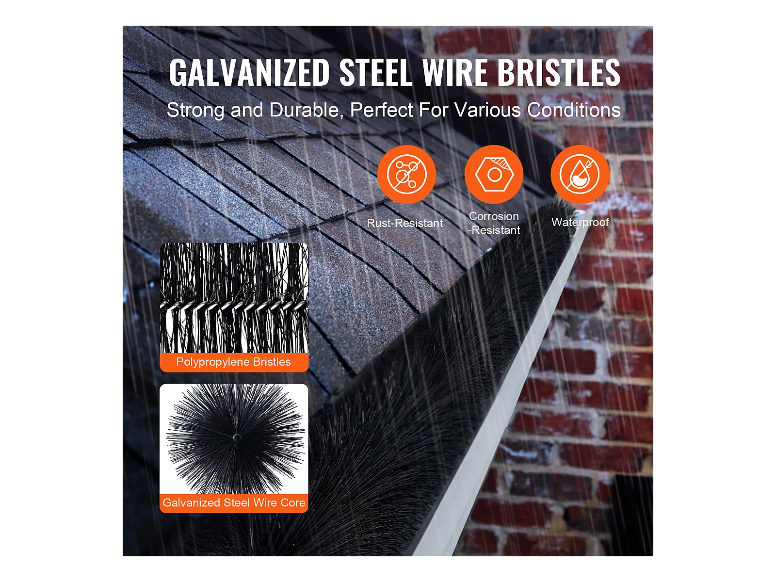 Escova de Proteção para Calha SucceBuy, Comprimento Total 4,6 m, Conjunto com 5, para Calhas de 12,7 cm, PP + Fio de Aço Galvanizado