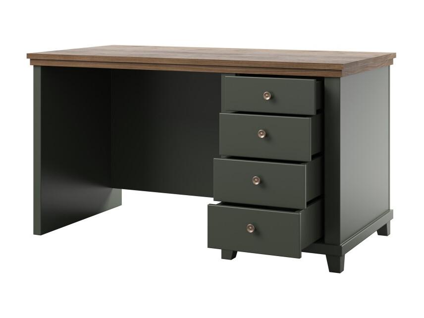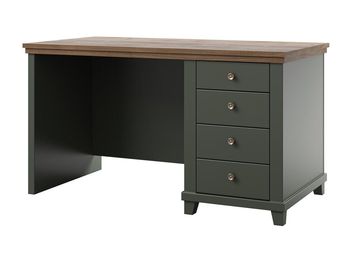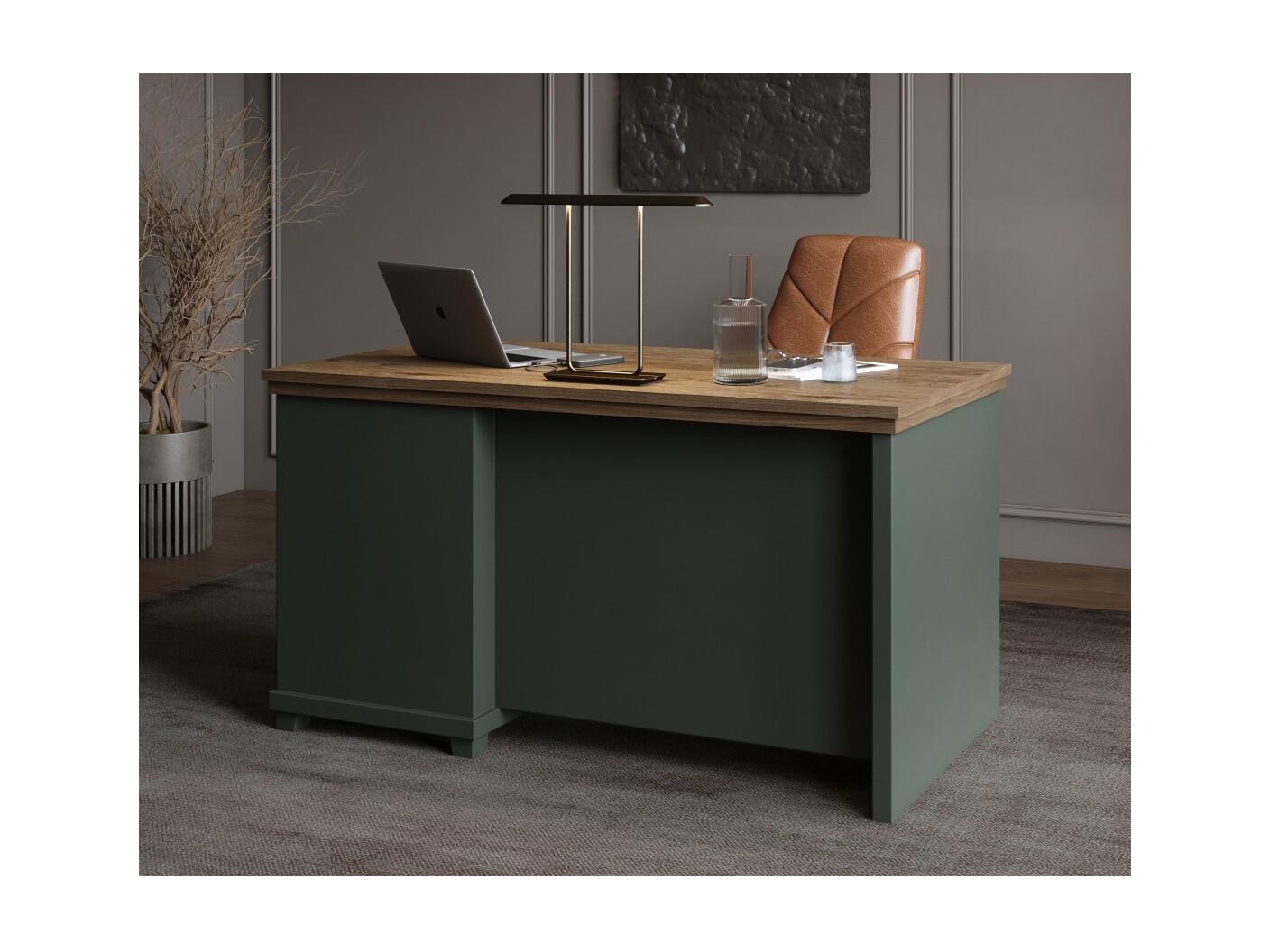 Escritório ASSIA 140 cm verde escuro e madeira - 4 gavetas com puxadores de botão - Elegância chique