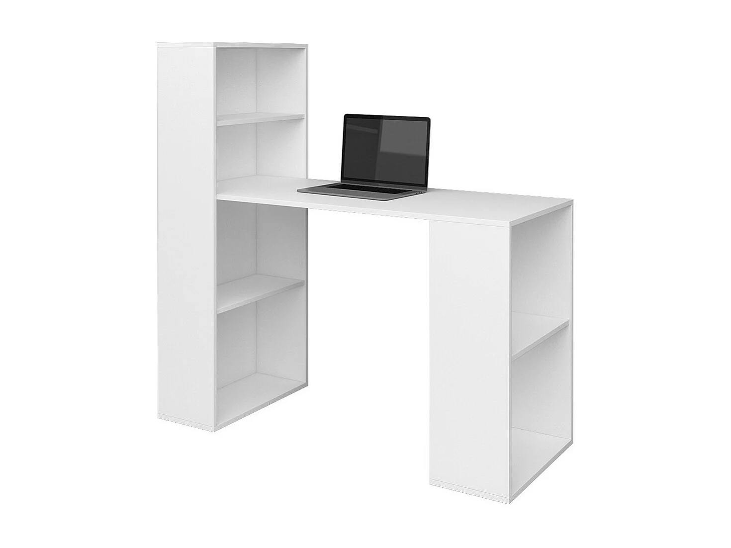 Escritório design com coluna de prateleira coleção FLOW na cor branca.