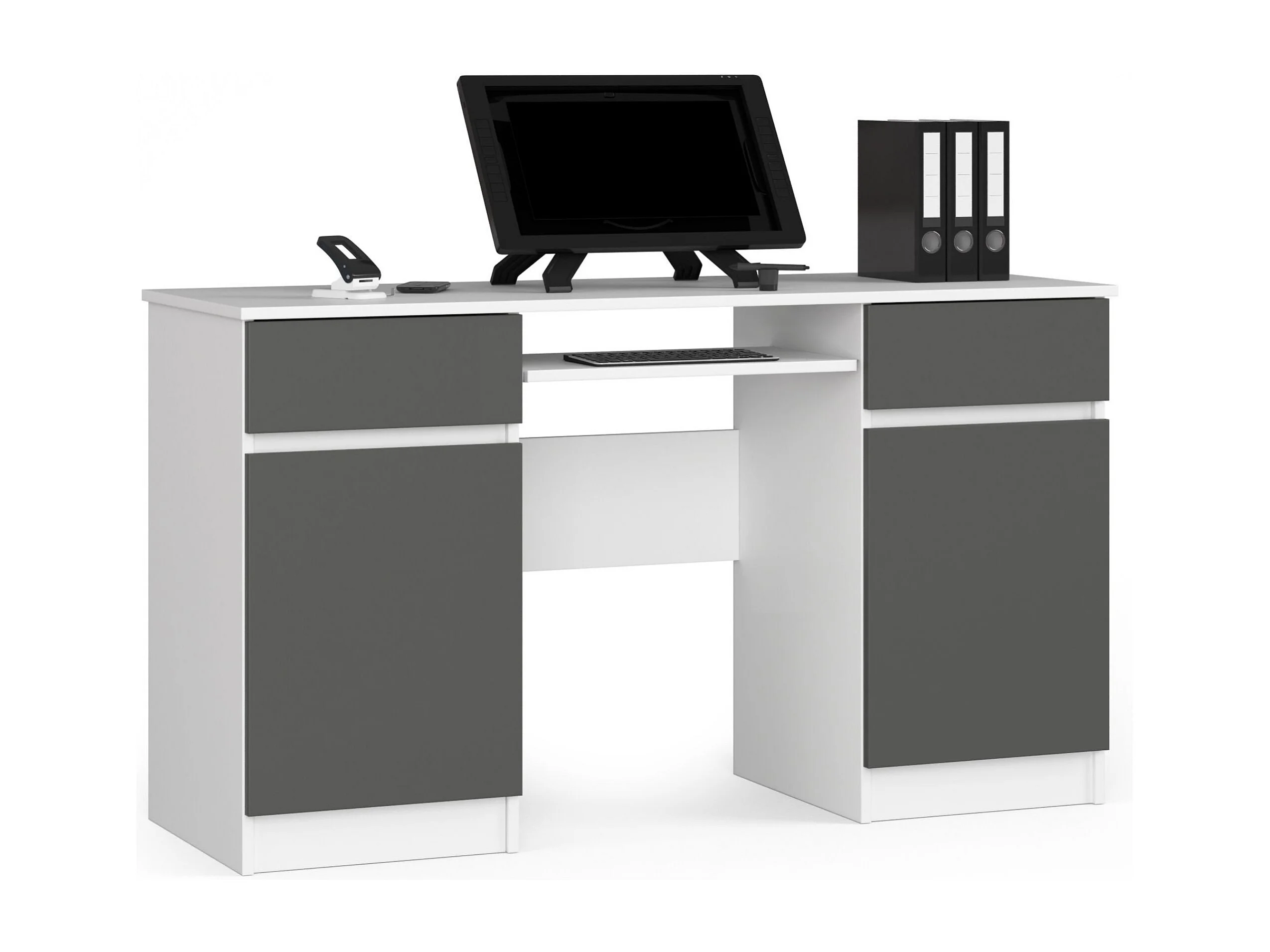 Escrivaninha Moderna A5 Branca/Cinza com 2 Gavetas e 2 Portas