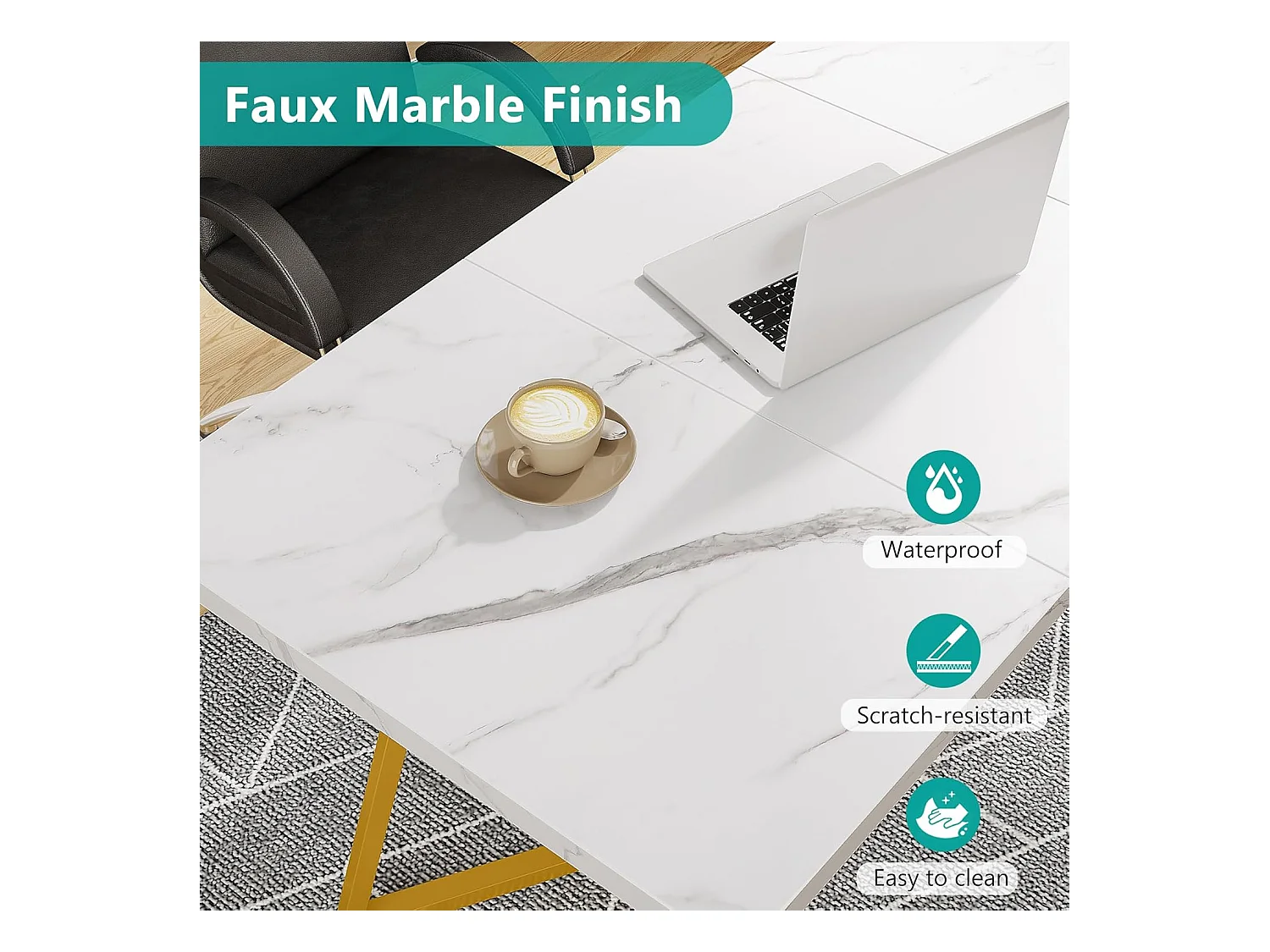 Escrivaninha para computador - 140 x 80 x 75 cm - Mesa de computador - Mesa de escritório - Mesa de trabalho - Mesa de escritório - Branco e dourado