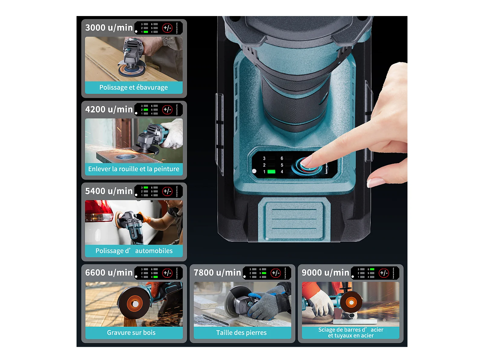 Esmerilhadeira angular sem fio de 125 mm - 2 baterias de 21 V e 4,0 Ah - Motor sem escovas de 9000 rpm - 6 níveis ajustáveis