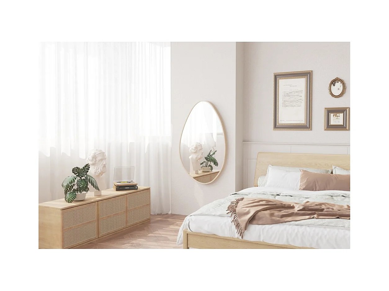 Espelho assimétrico NARA – 50x80 cm – Acabamento em carvalho envelhecido – MDF com decoração de madeira – Estilo orgânico e na moda
