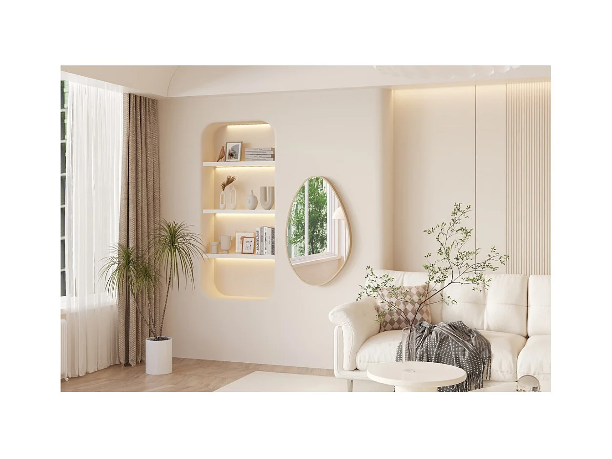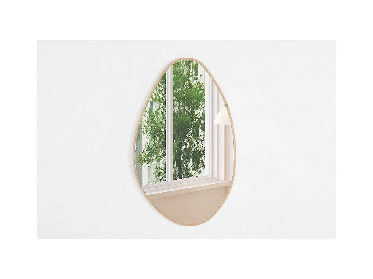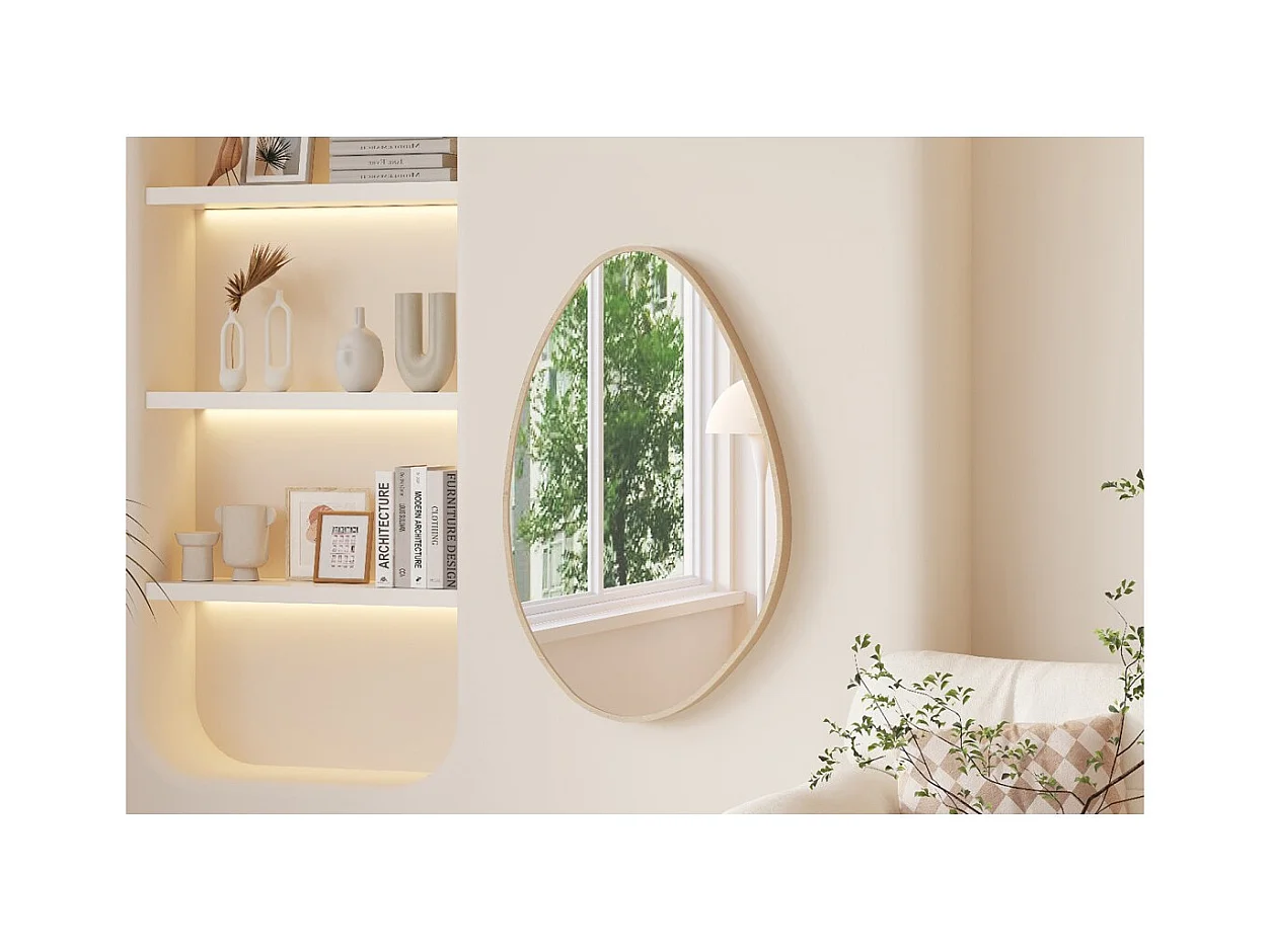Espelho assimétrico NARA – 50x80 cm – Acabamento em carvalho envelhecido – MDF com decoração de madeira – Estilo orgânico e na moda