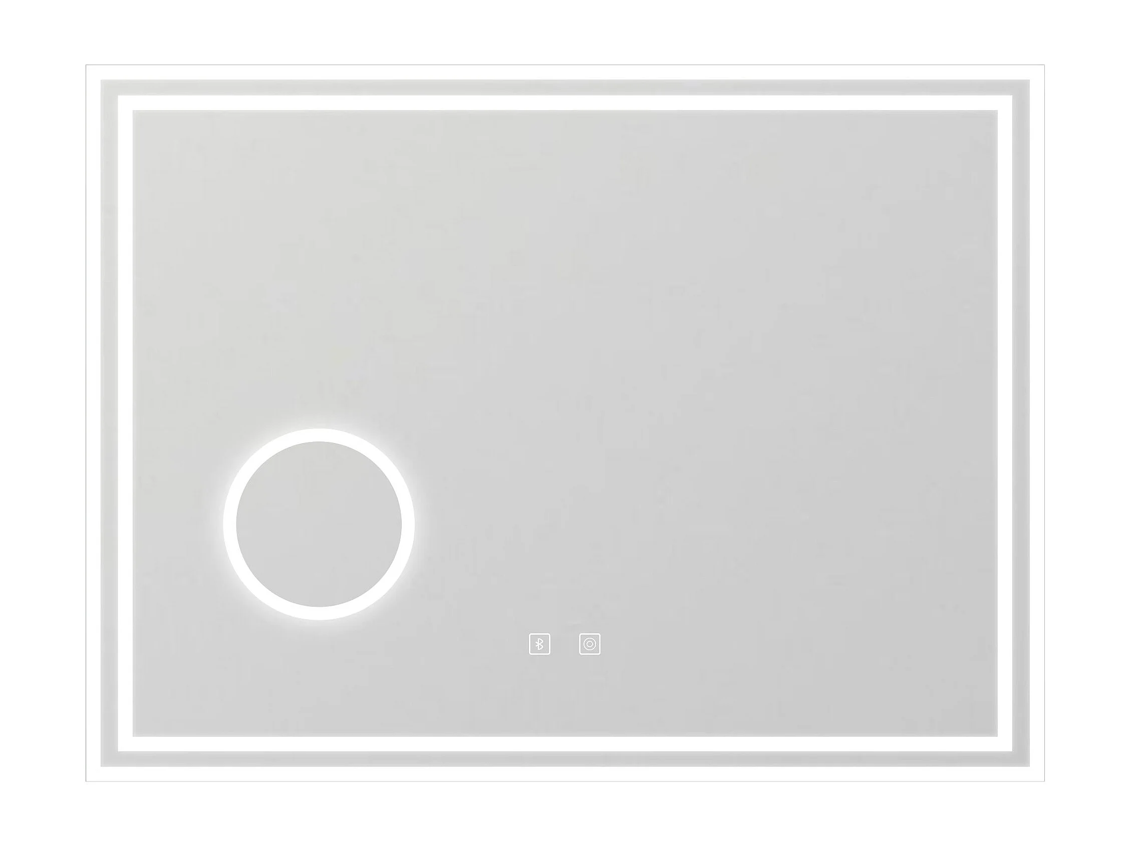 Espelho de banheiro com LED, 80 x 60 cm, luz LED com três cores, com função antiembaciamento, Bluetooth e lupa de aumento 3x.