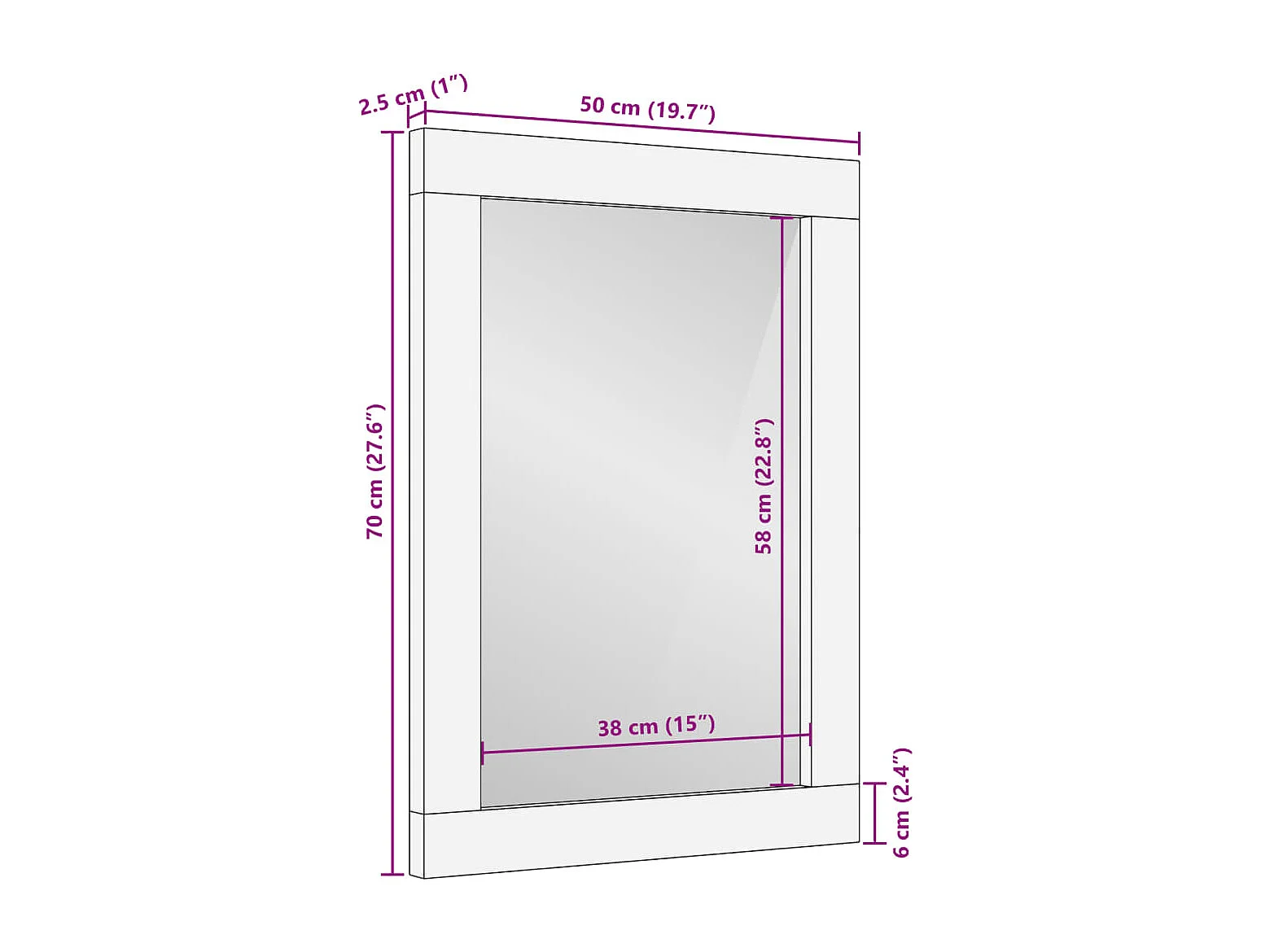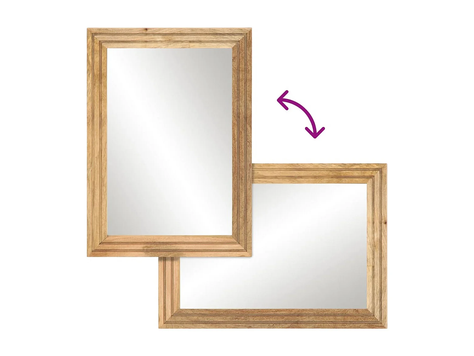 Espelho de banho 50x70 cm madeira maciça de mangueira crua e vidro
