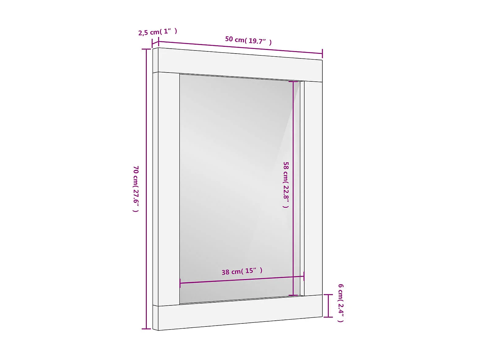 Espelho de casa de banho 50x70x2,5 cm mangueira maciça e vidro