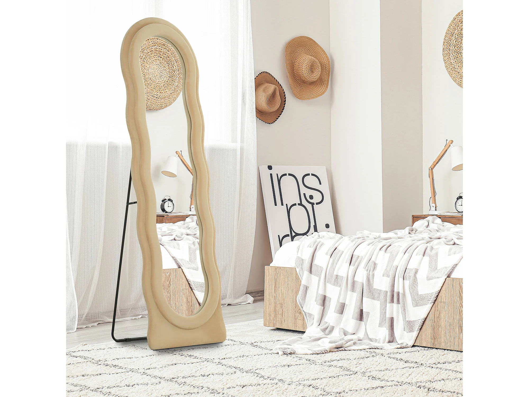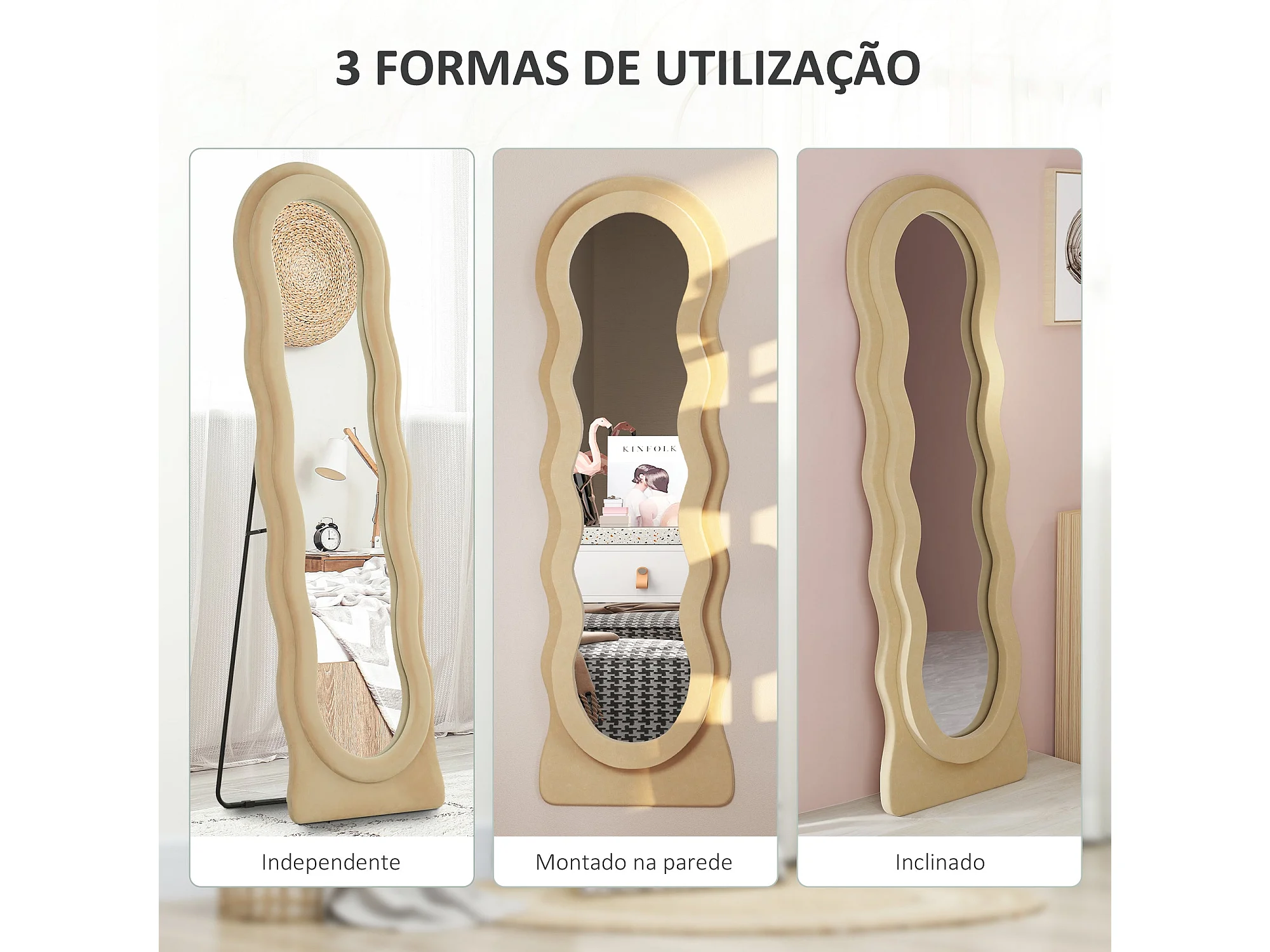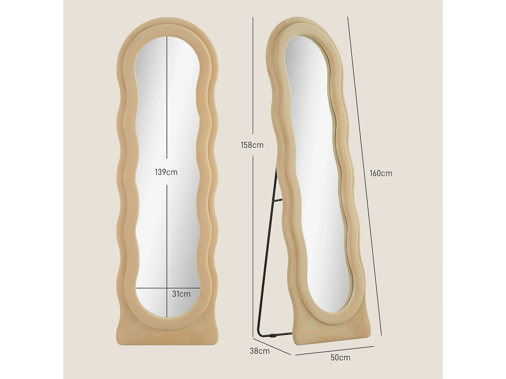 Espelho de Corpo Inteiro Ondas em Veludo Bege – 50x160 cm com Design Moderno