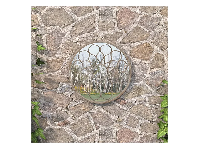 Espelho de Jardim Redondo em Ferro para Exterior - 40 cm de Diâmetro em Cor Areia