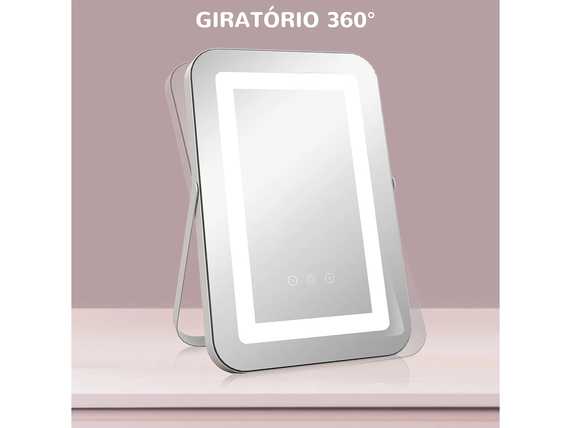 Espelho de Maquilhagem HOMCOM com Luzes LED e Suporte para Telemóvel - Design Giratório 58x46 cm com 3 Modos de Iluminação