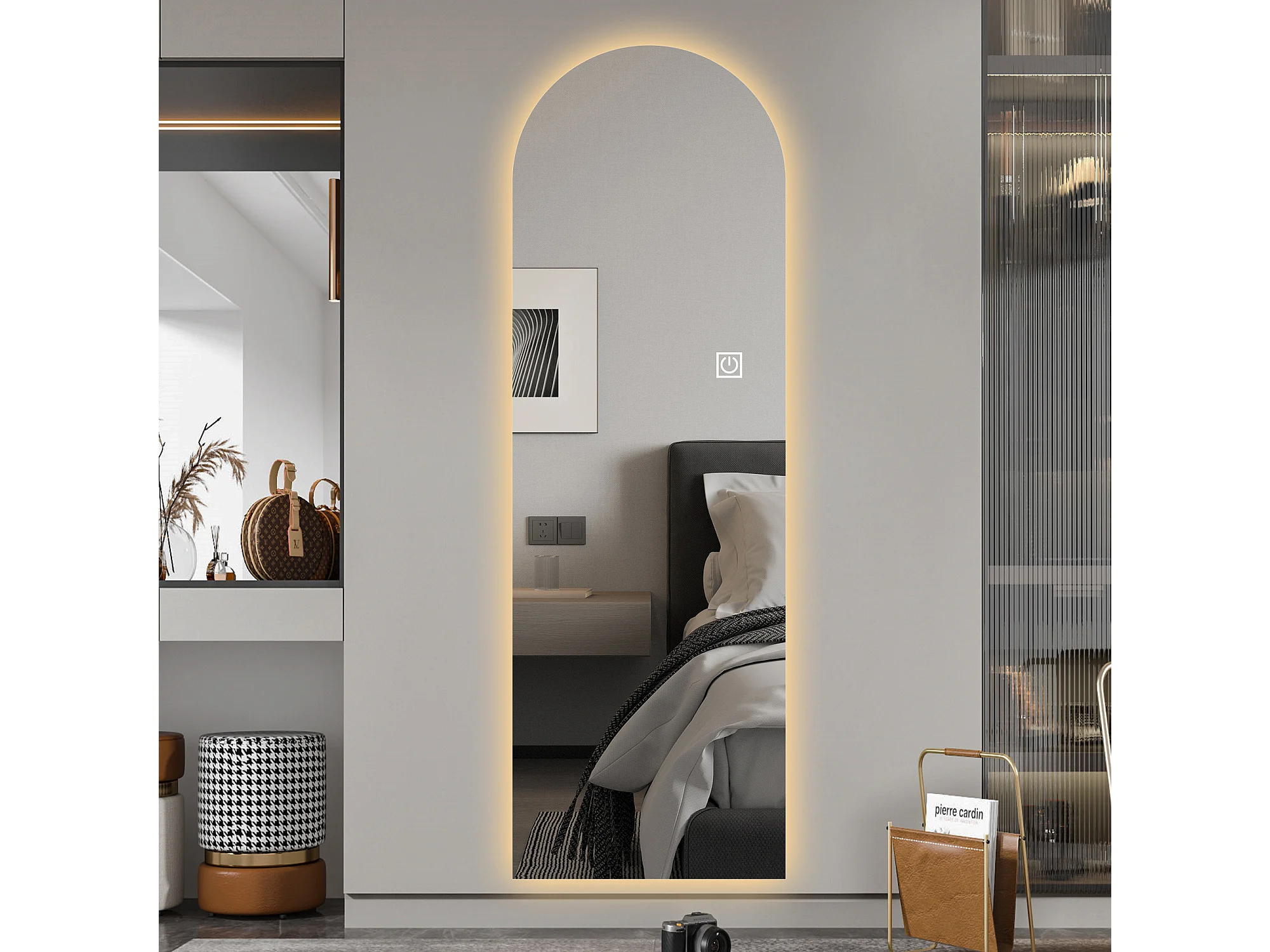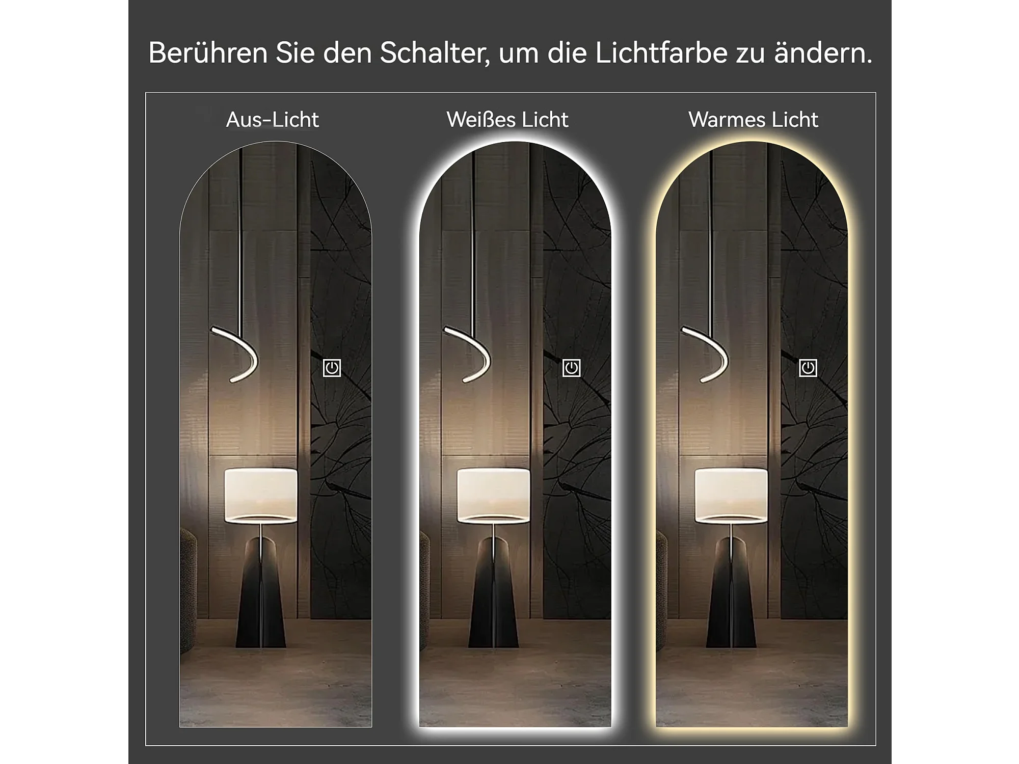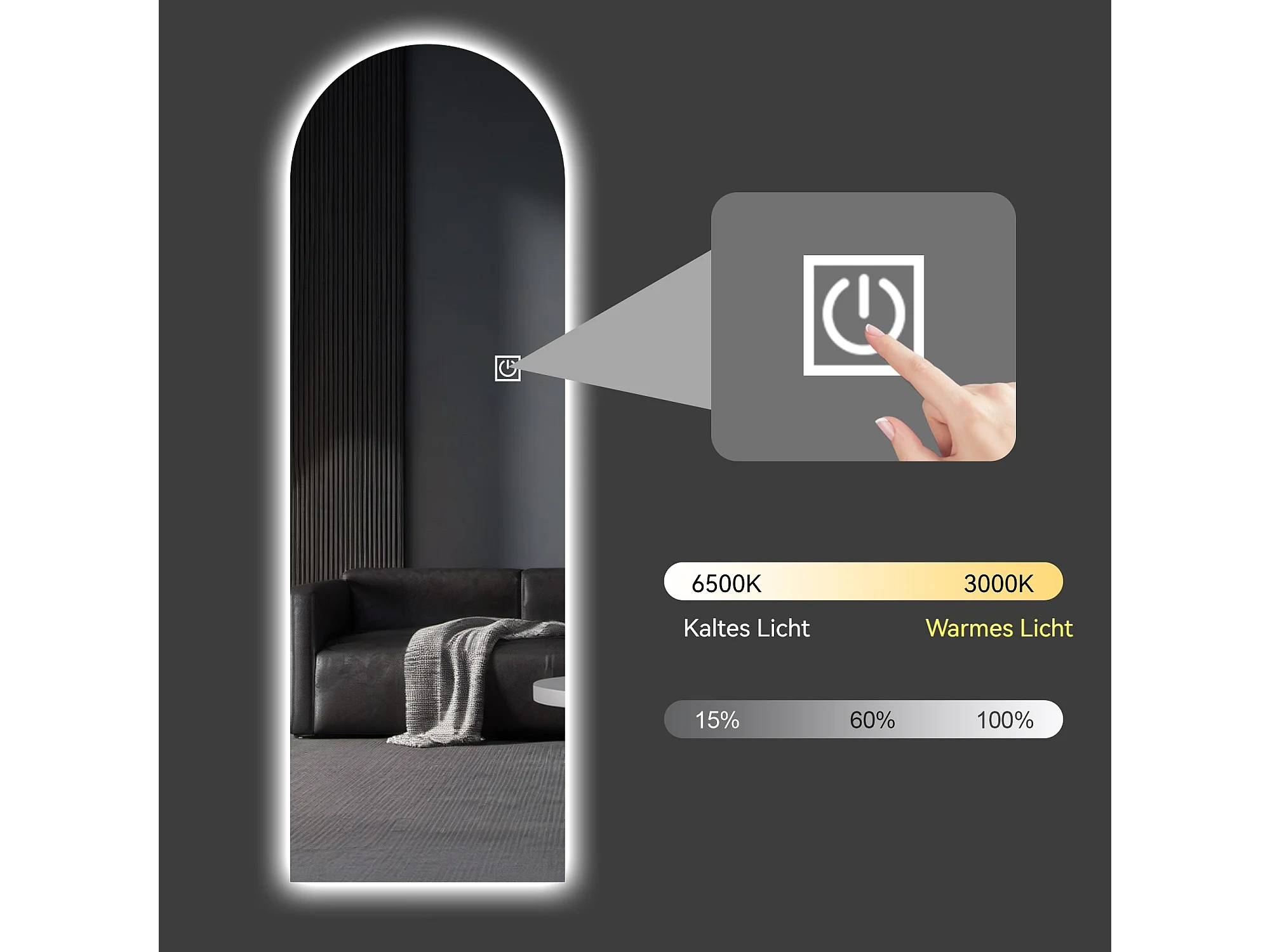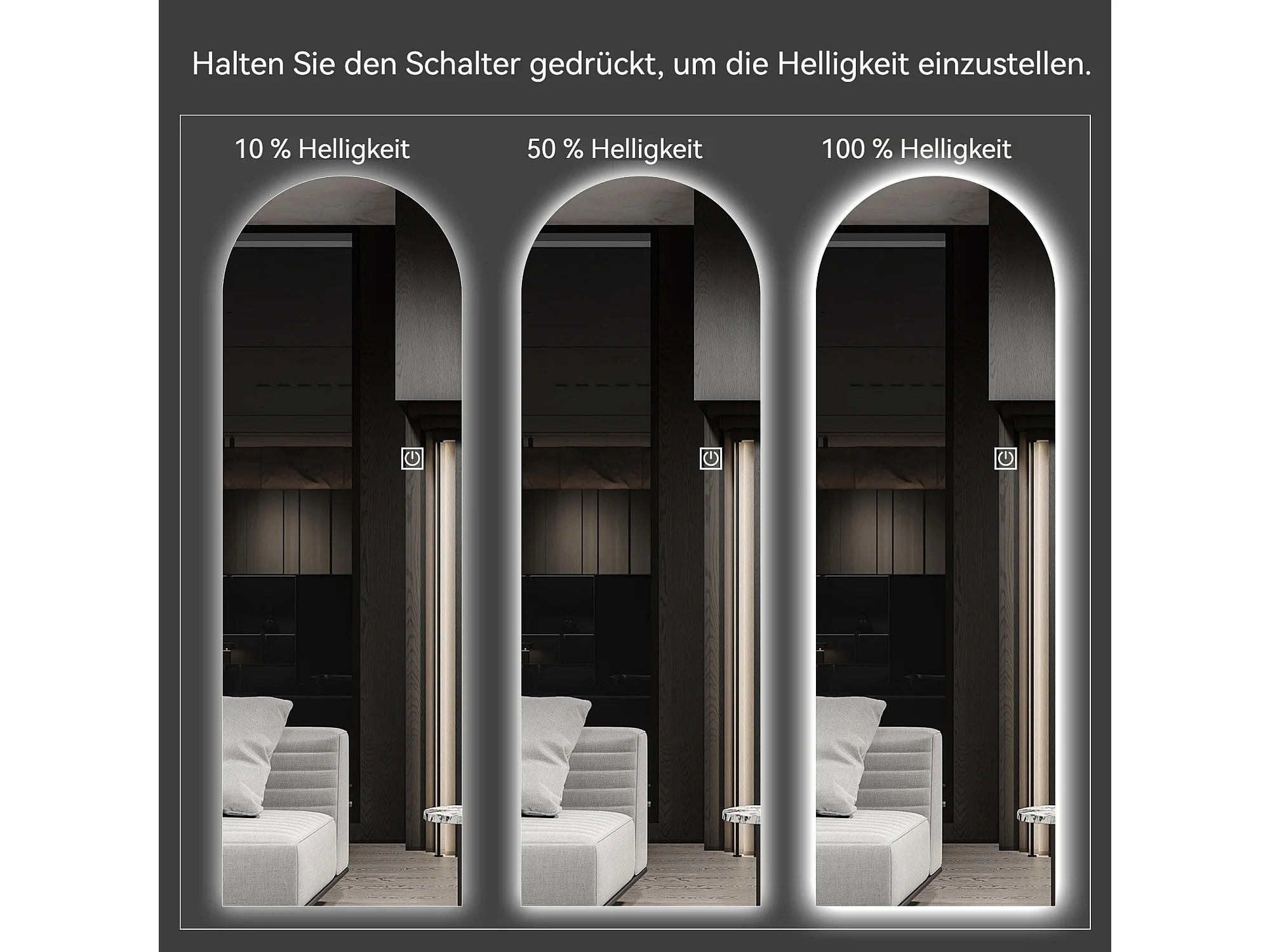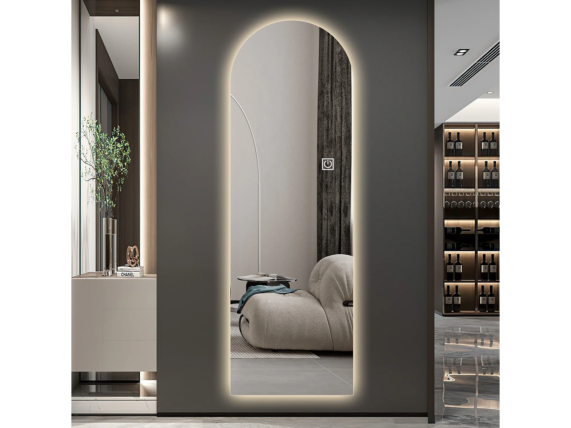 Espelho de mesa ou de parede com LED, 165x50 cm, com brilho ajustável - Vidro prateado