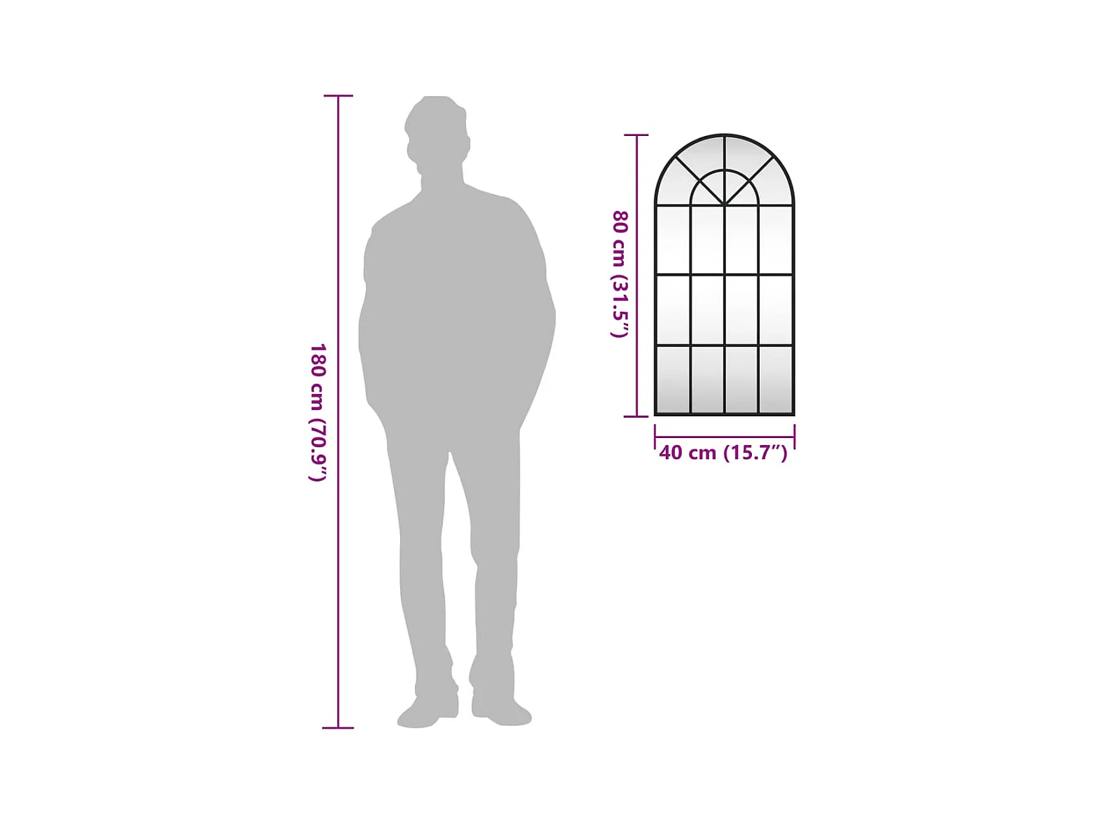 Espelho de parede arqueado 40x80 cm ferro preto