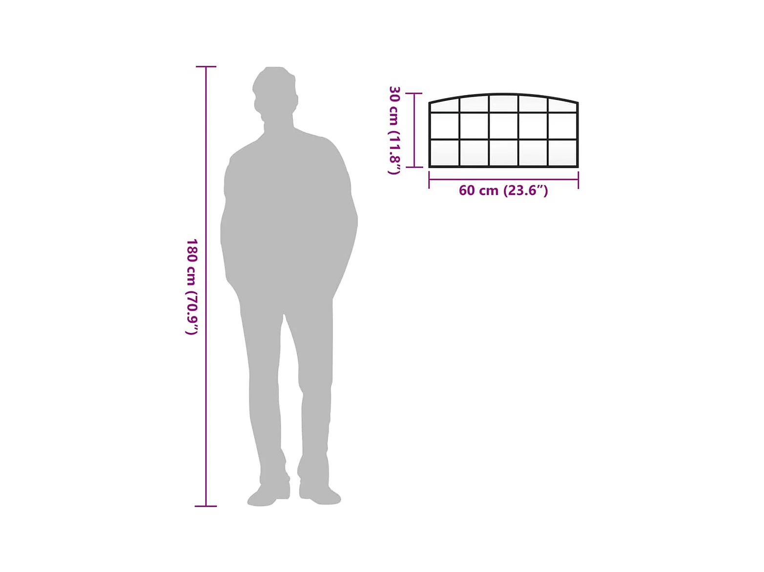 Espelho de jardim p/ uso exterior ferro 70x30 cm preto