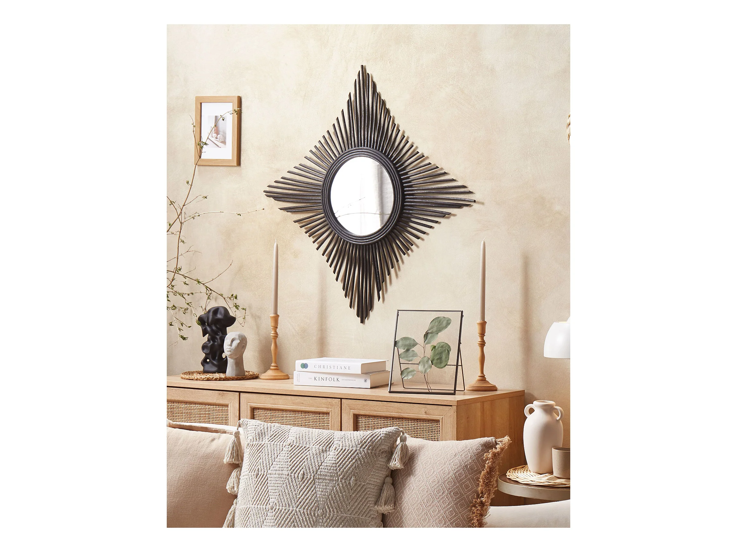 Espelho TELAKIA 60 cm 60 cm Rattan Preto