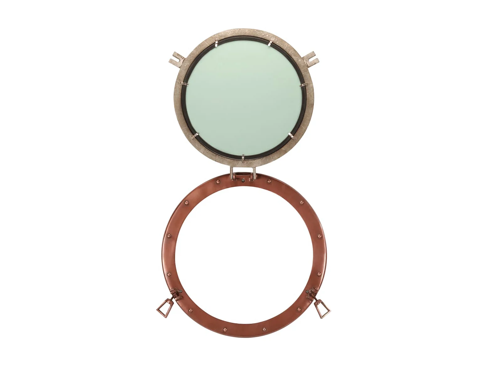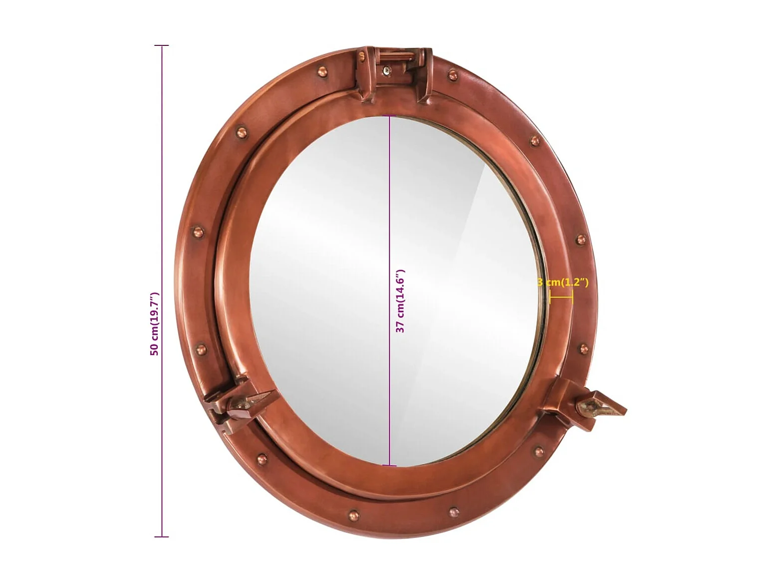 Espelho de parede estilo escotilha Ø50 cm alumínio e vidro