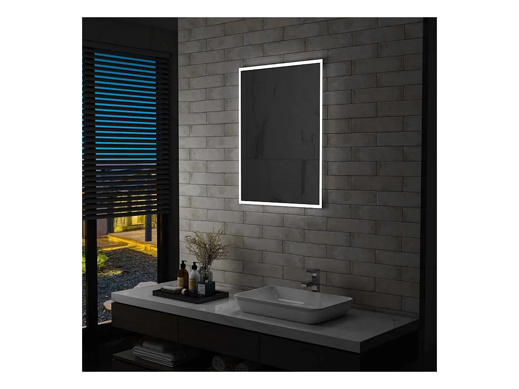 Espelho de parede LED c/ prateleira para casa de banho 60x100cm