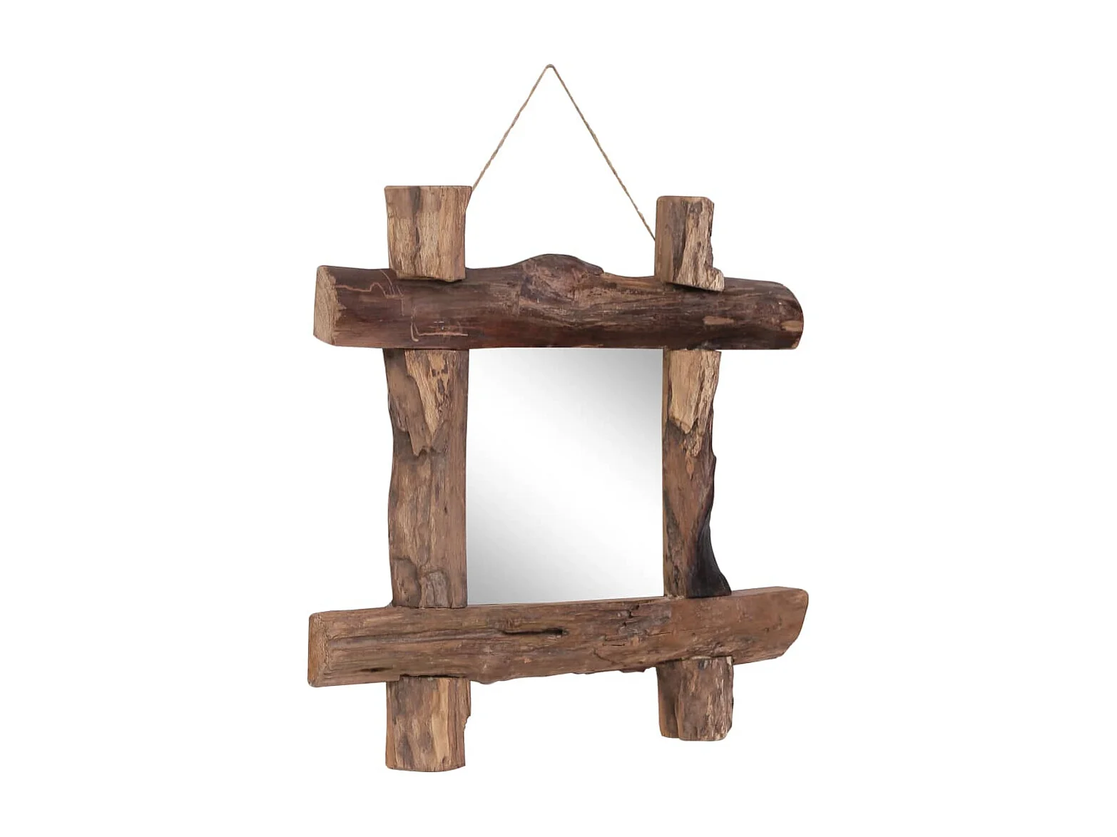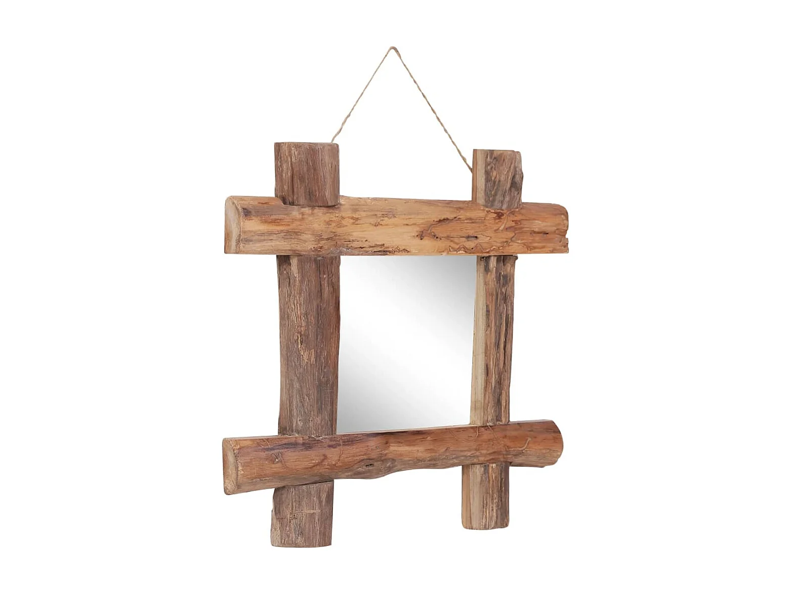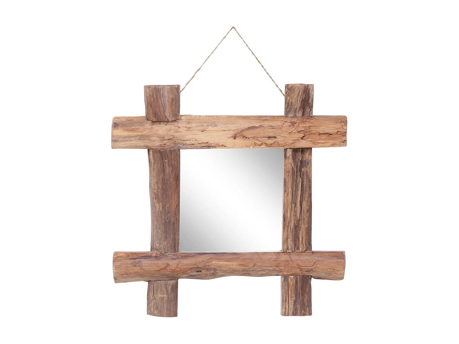 Espelho de troncos 50x50 cm madeira de teca reciclada natural