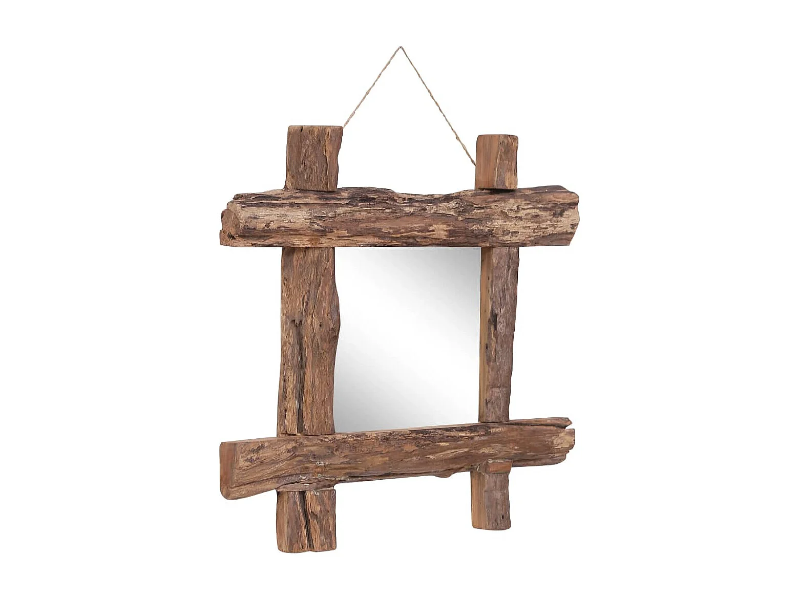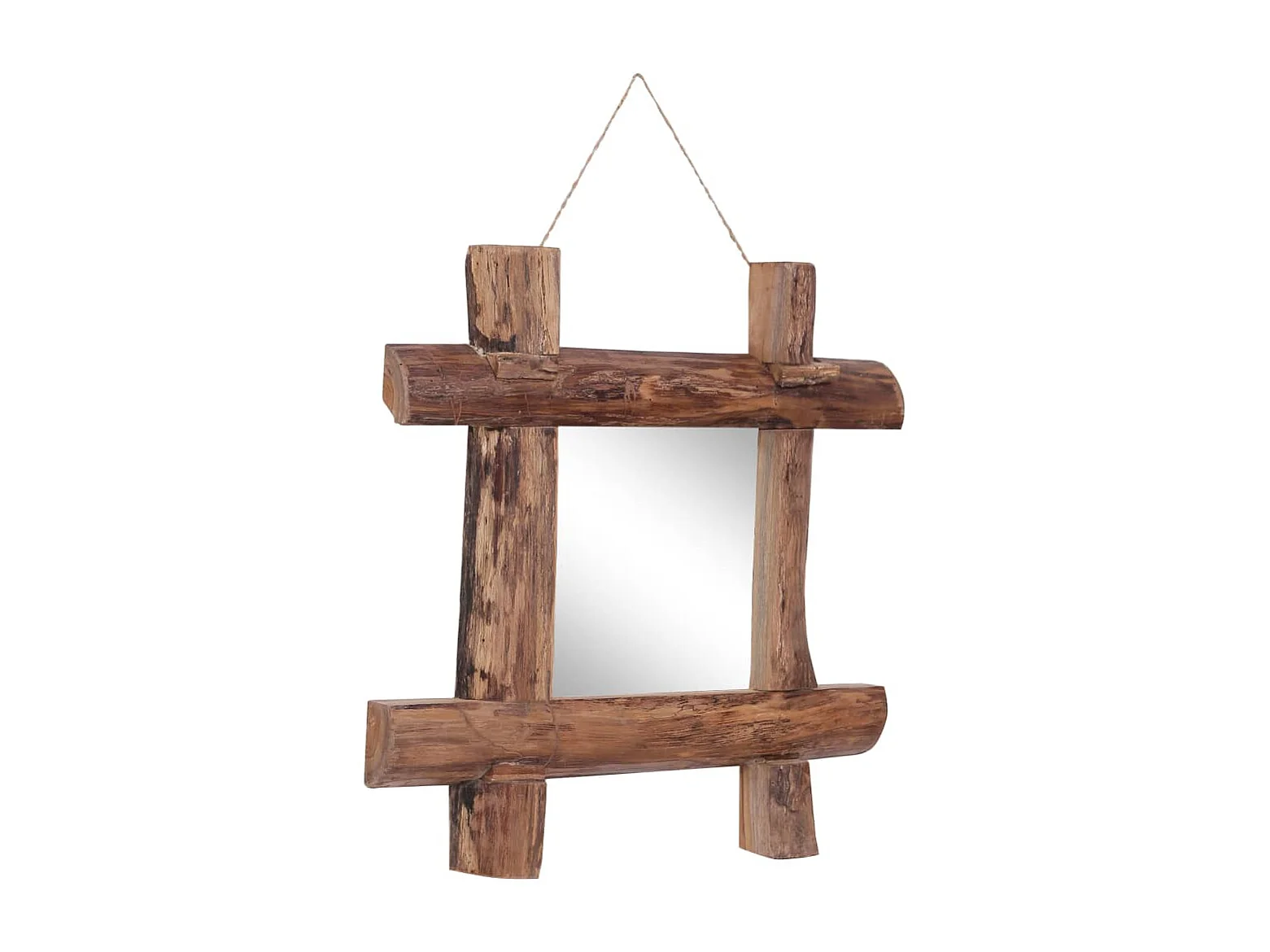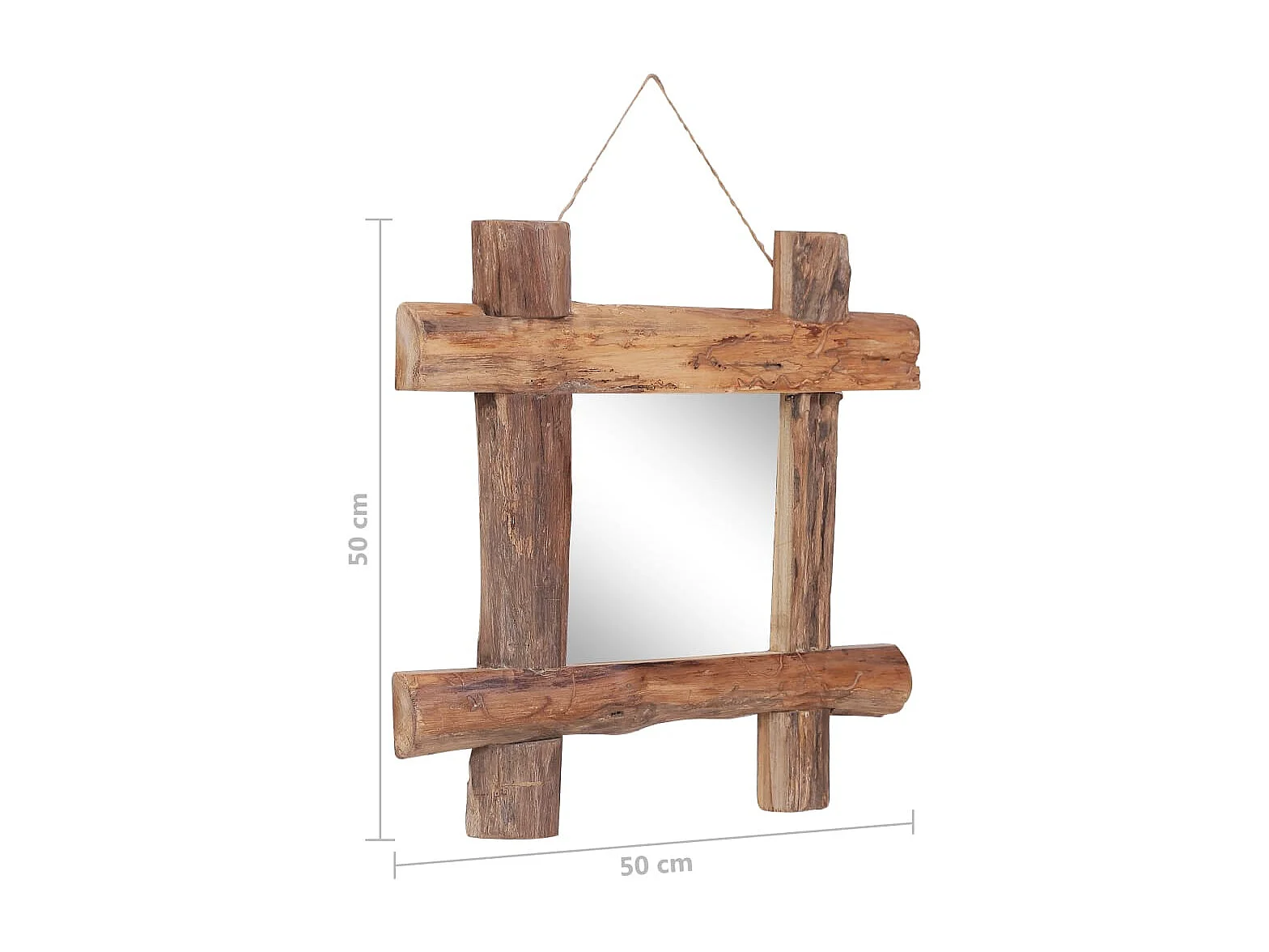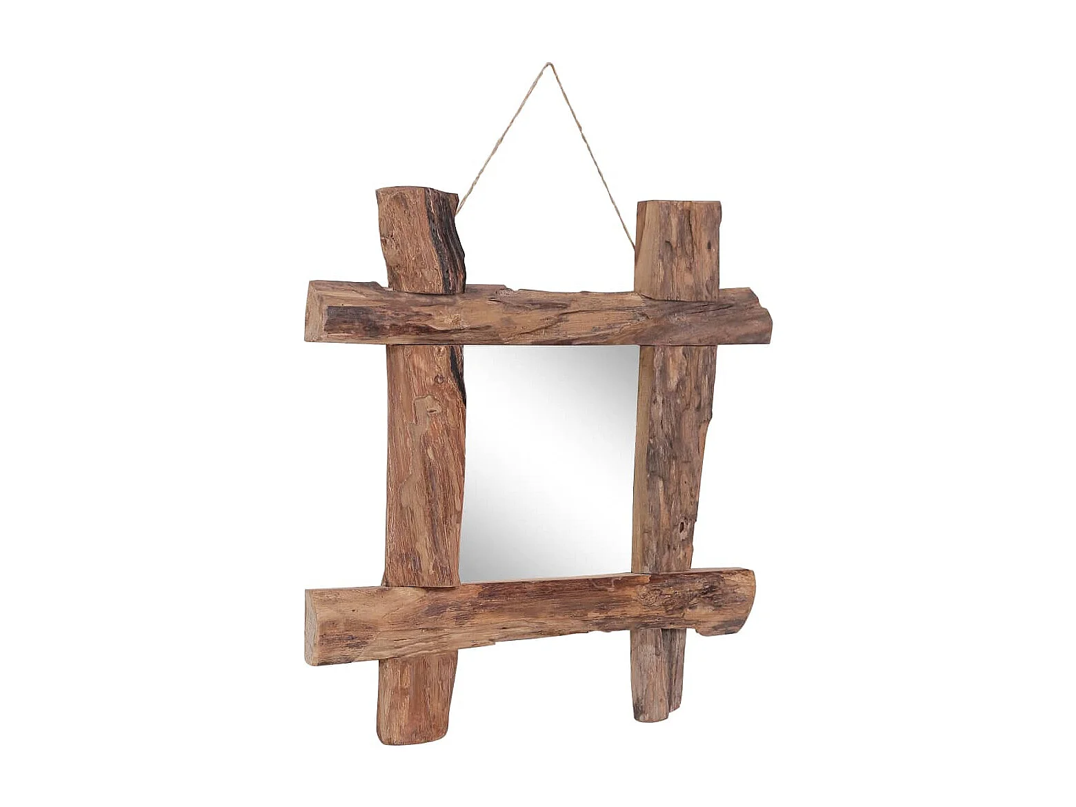 Espelho de troncos 50x50 cm madeira de teca reciclada natural