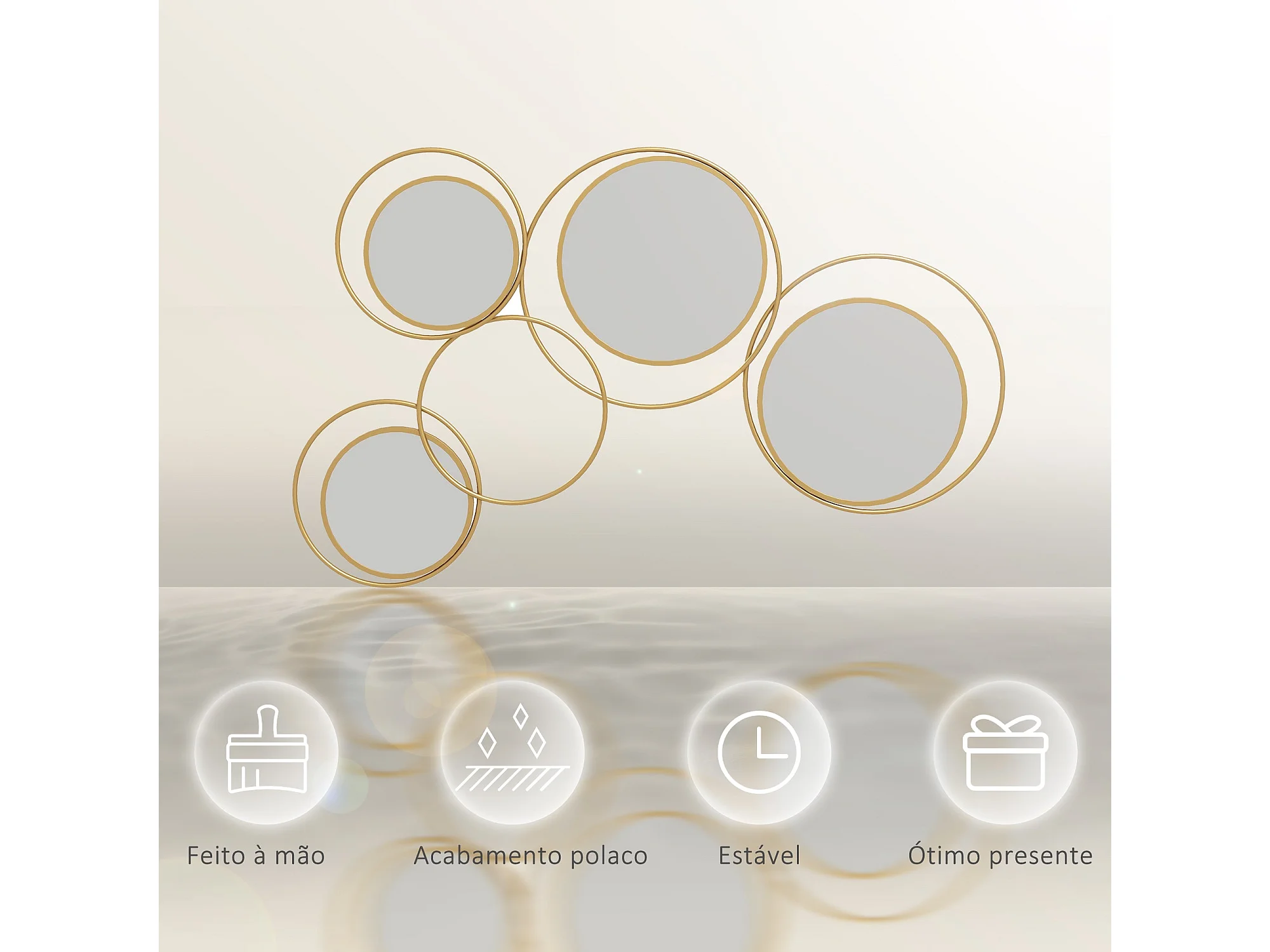 Espelho Decorativo de Parede em Metal 3D com 4 Espelhos Redondos - Dourado 110x68 cm