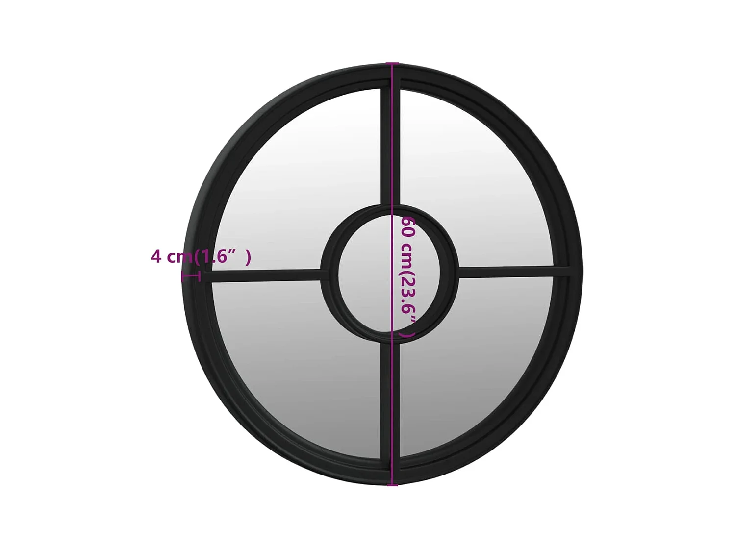 Espelho em ferro redondo p/ uso no interior 60x2,5 cm preto