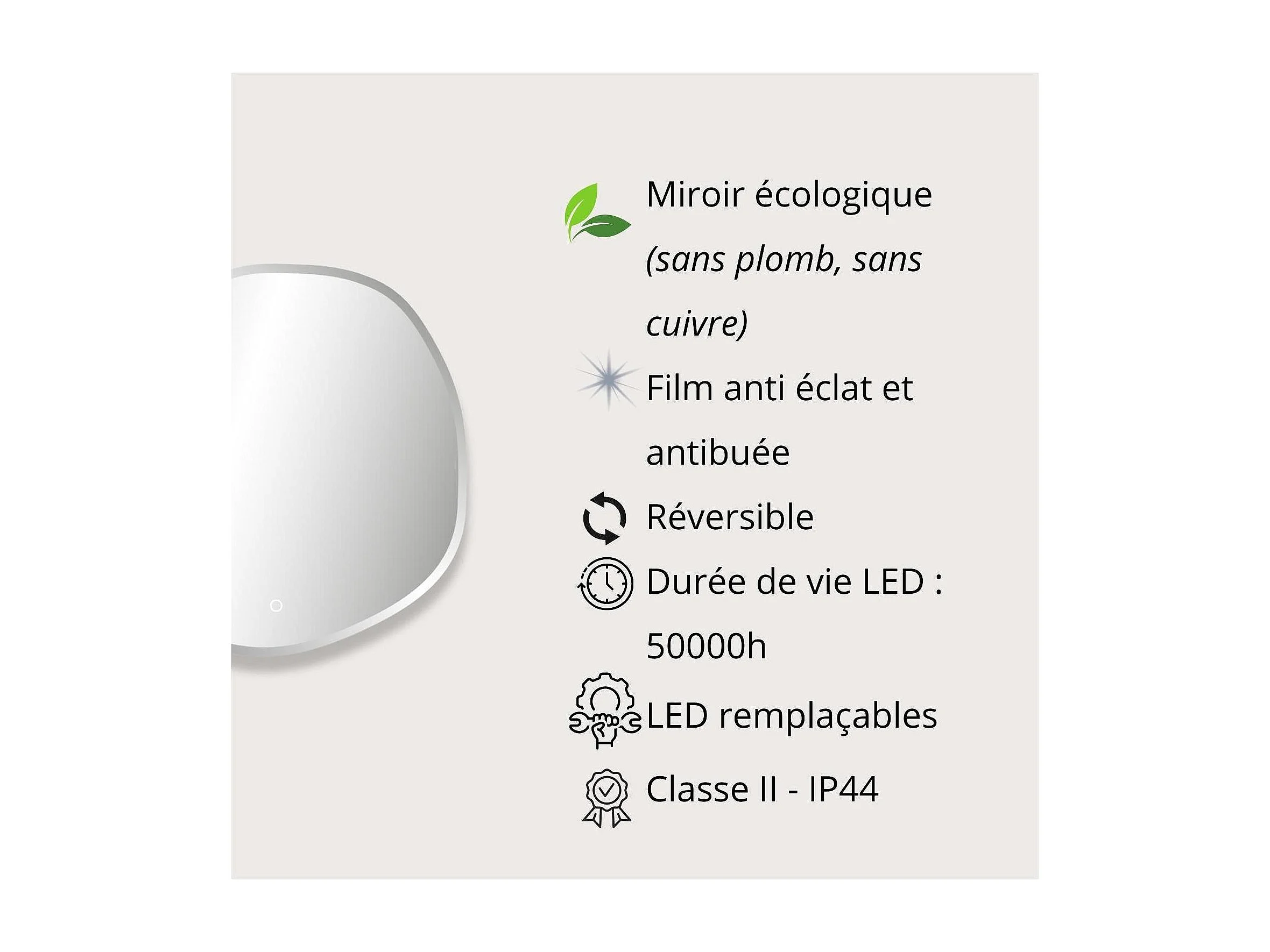 Espelho LED orgânico D60/80cm em vidro prateado FLUEA