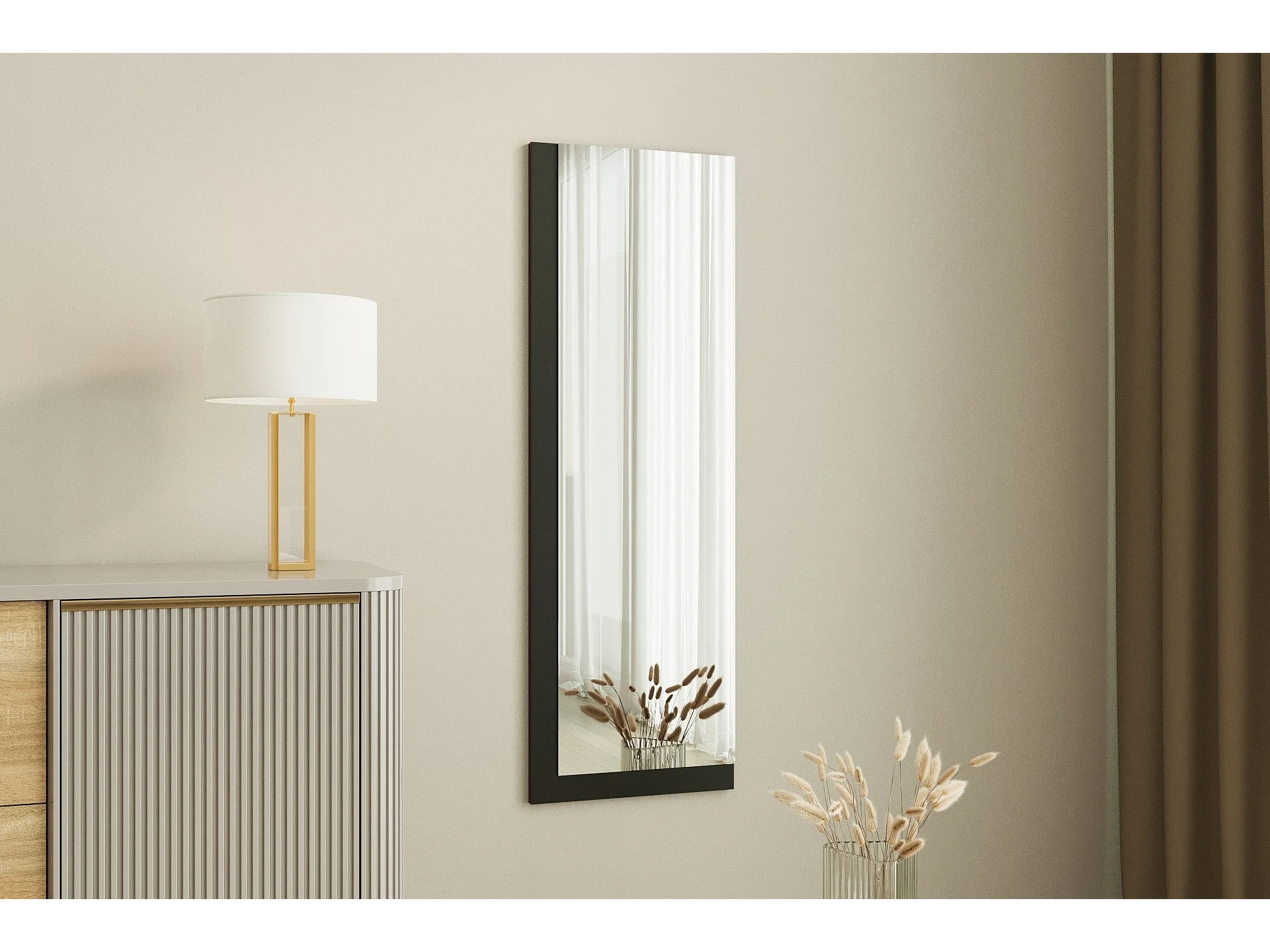Espelho Moderno Lariya - 40x120 cm - Branco e Preto - Elegância e Estilo para Sua Casa