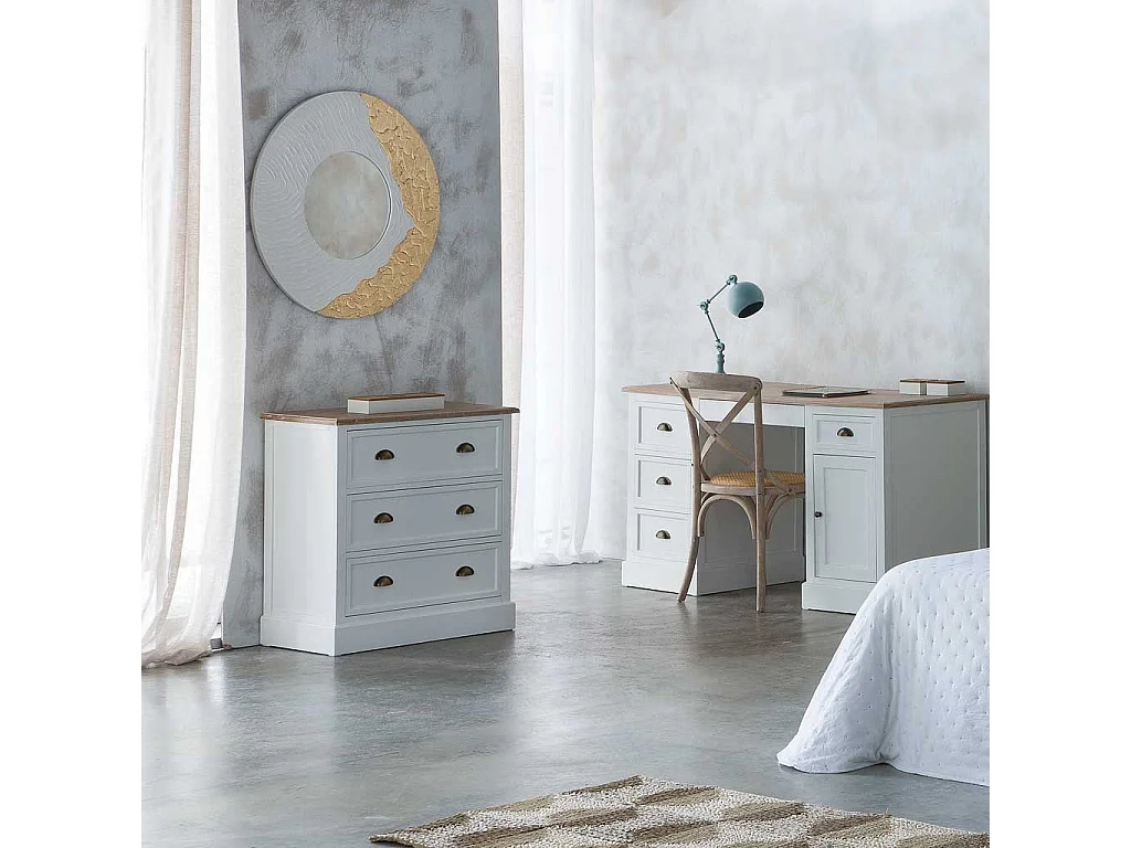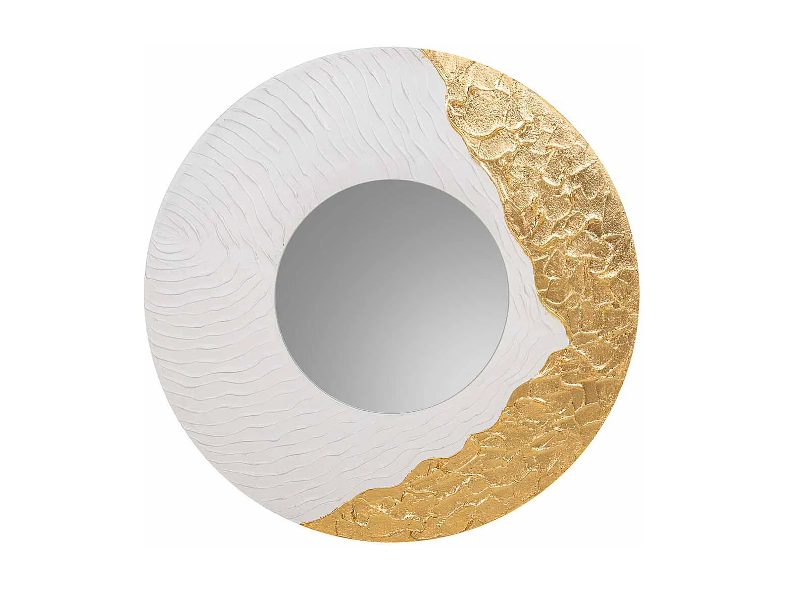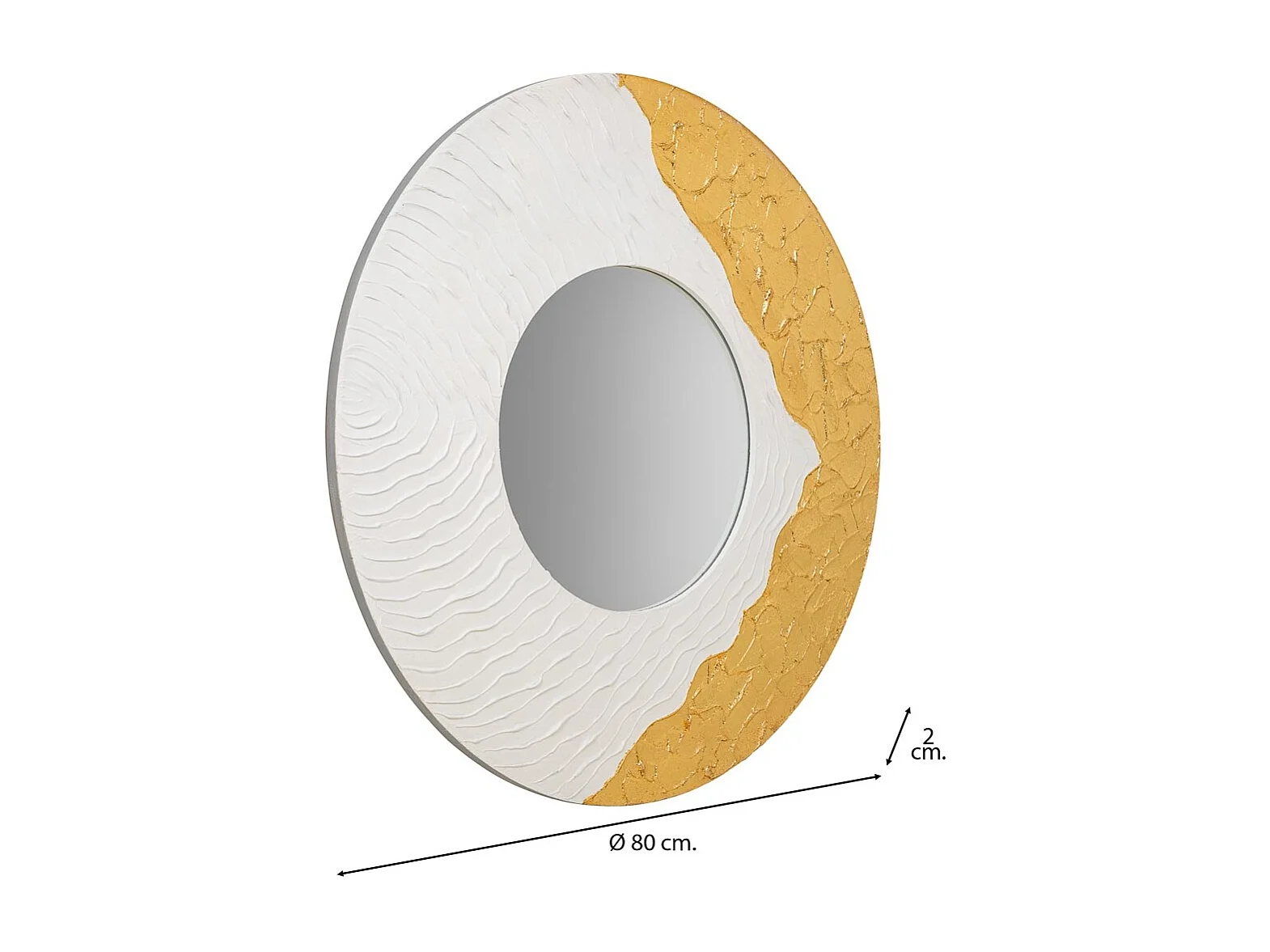 Espelho redondo de madeira com relevo branco d80x2