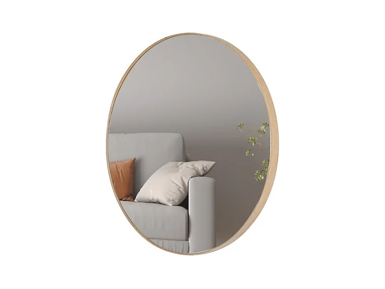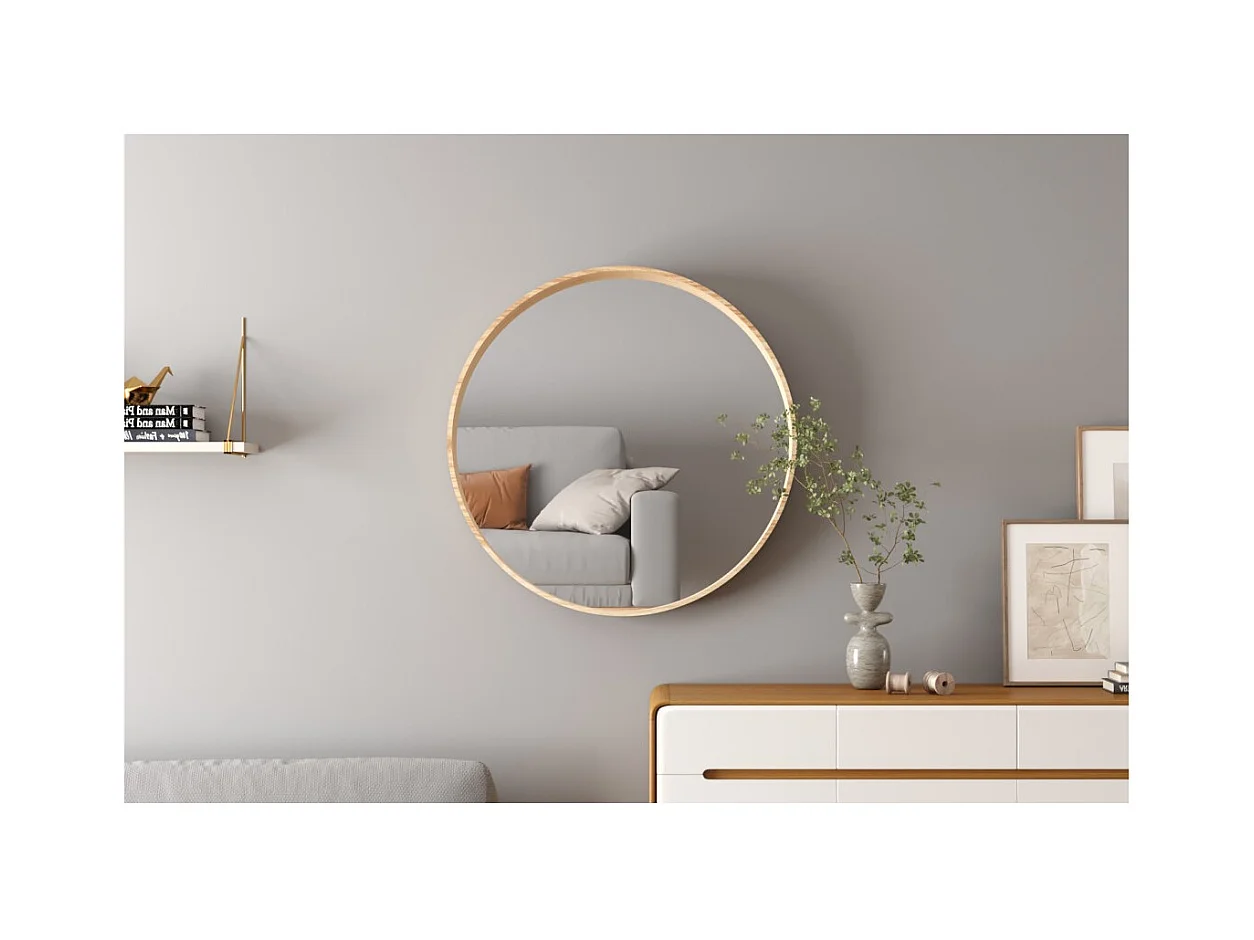 Espelho redondo RIO – Ø80 cm – Acabamento em carvalho envelhecido – MDF com decoração de madeira – Design natural e moderno