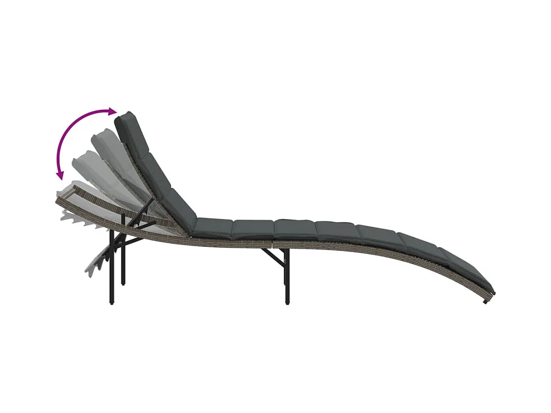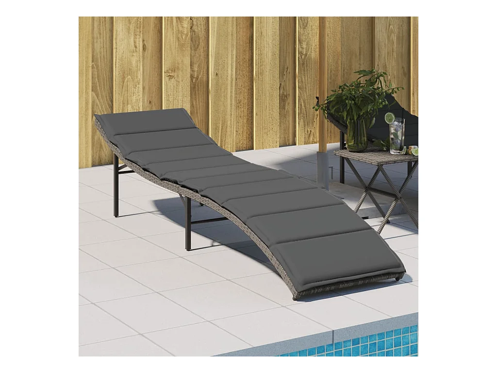Espreguiçadeira com almofada cinza 55x199x50 cm resina tecida