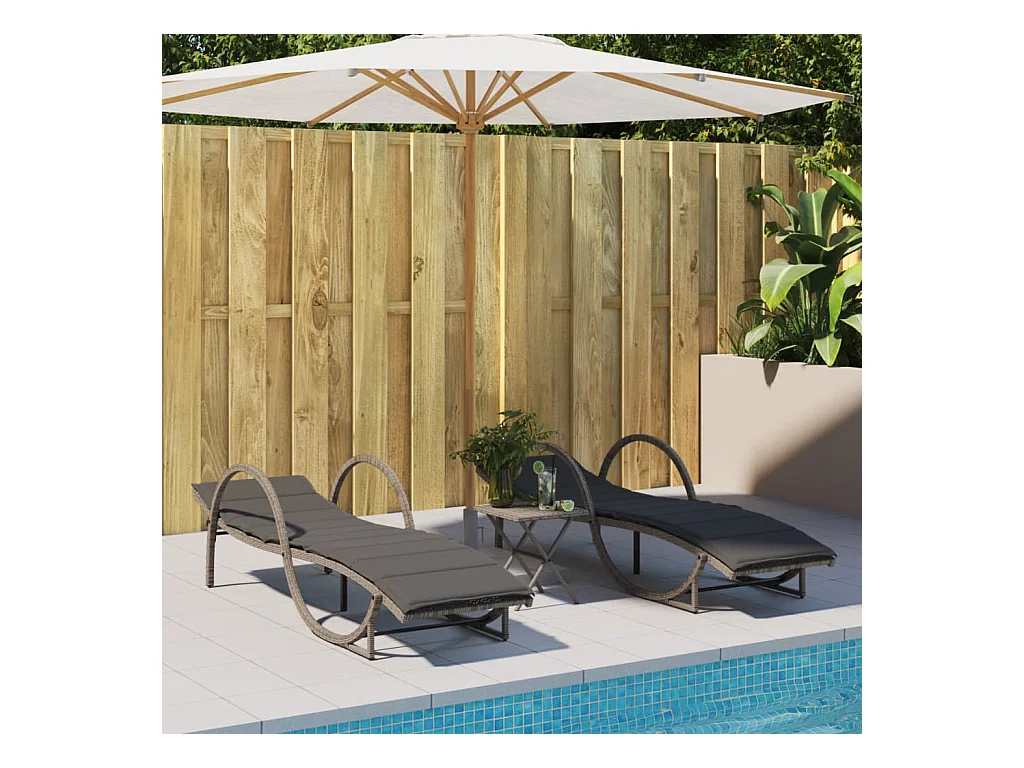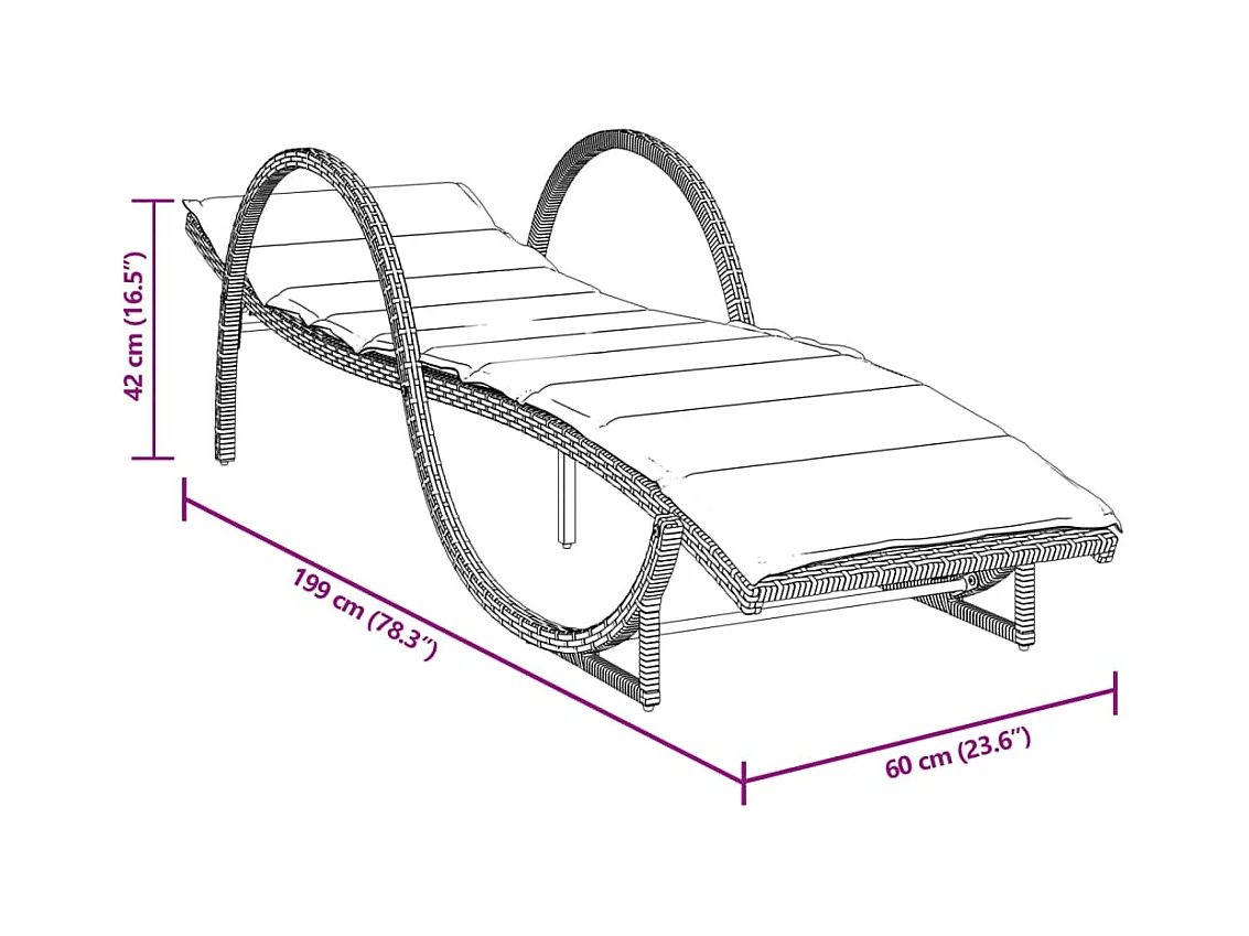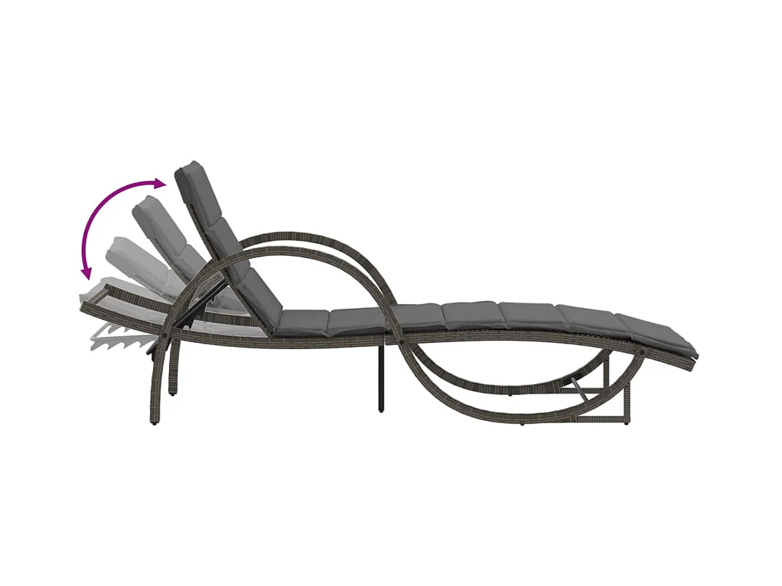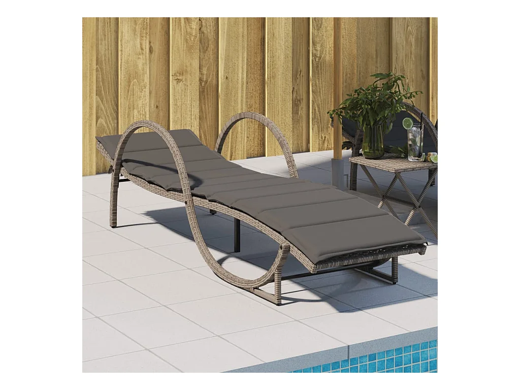 Espreguiçadeira com almofada cinza 60x199x42 cm resina tecida